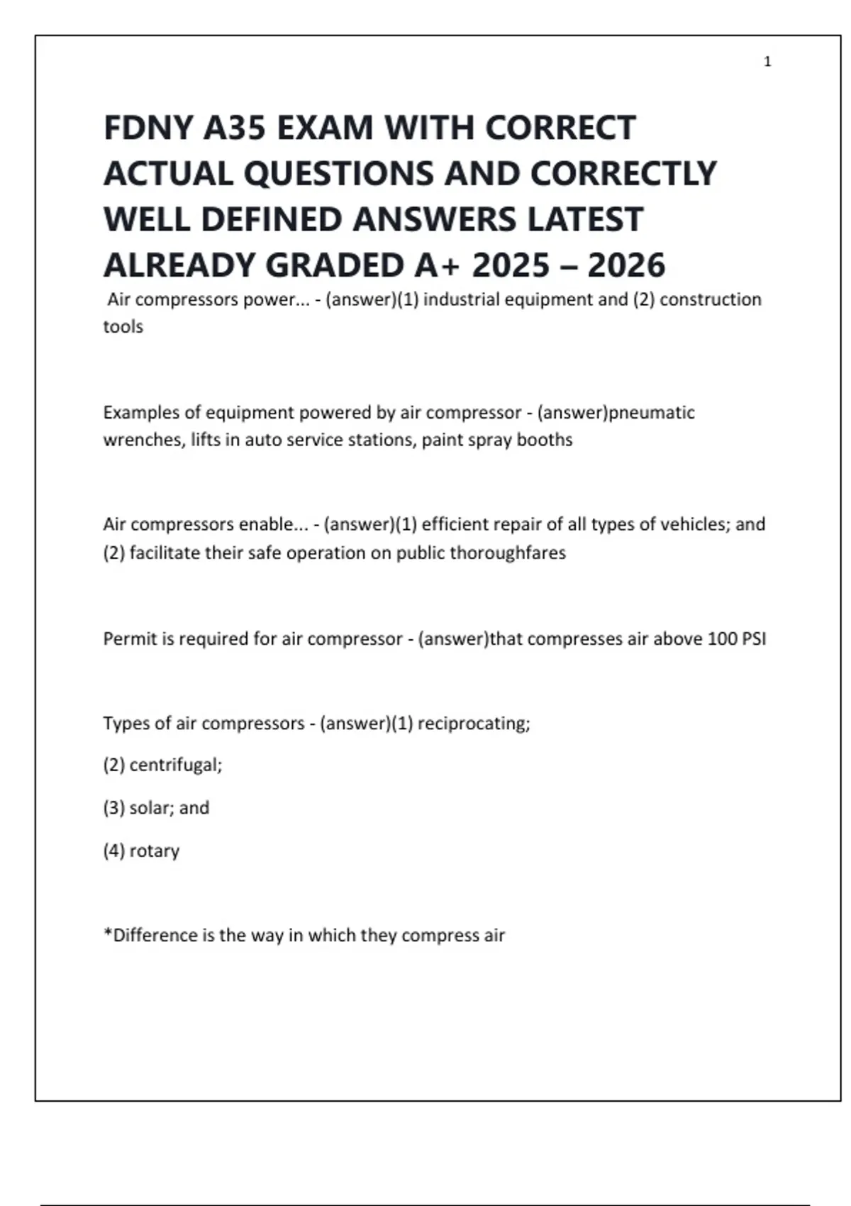 Air compressors enable... - (answer)(1) efficient repair of all types of vehicles; and