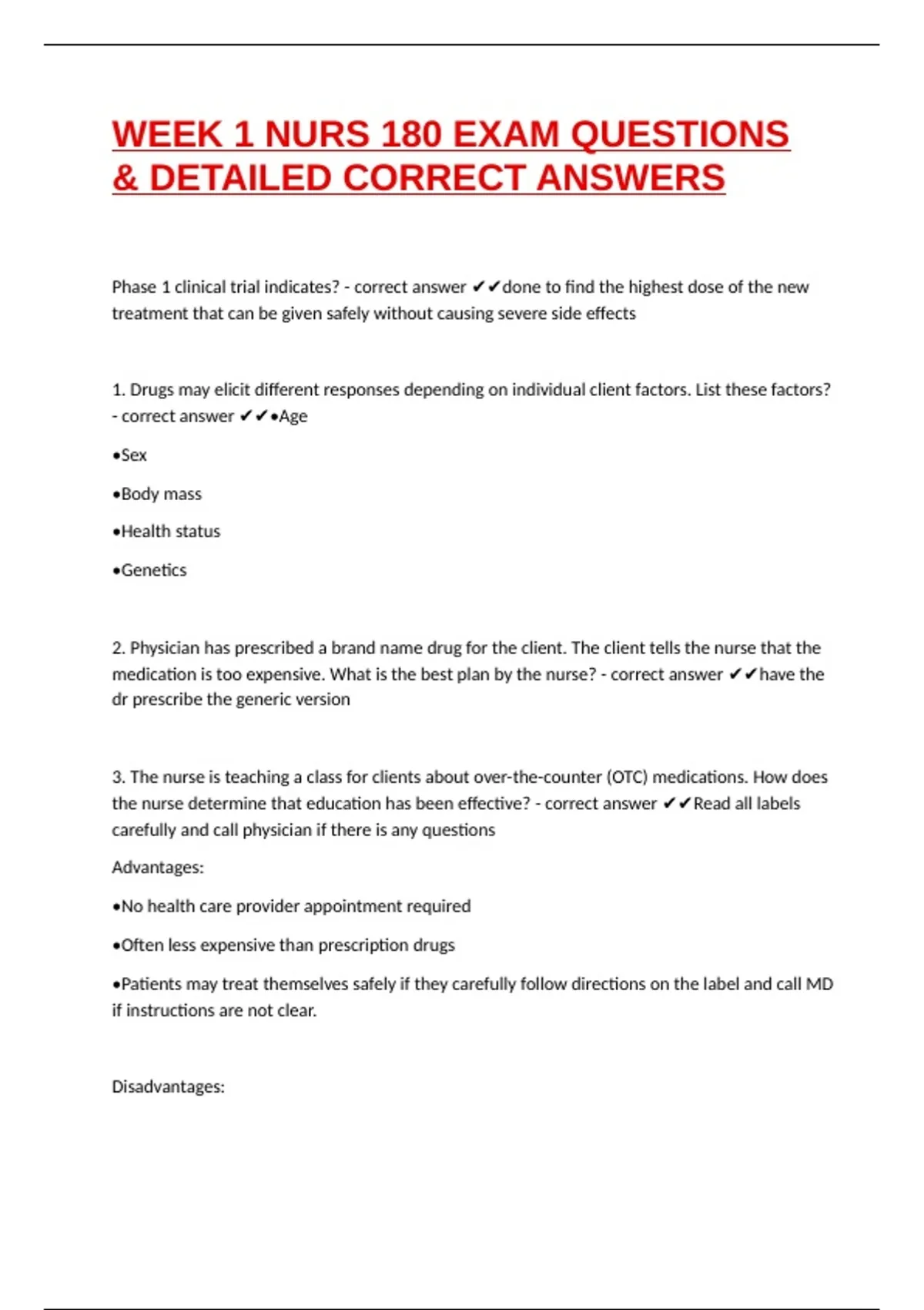 WEEK 1 NURS 180 EXAM QUESTIONS & DETAILED CORRECT ANSWERS