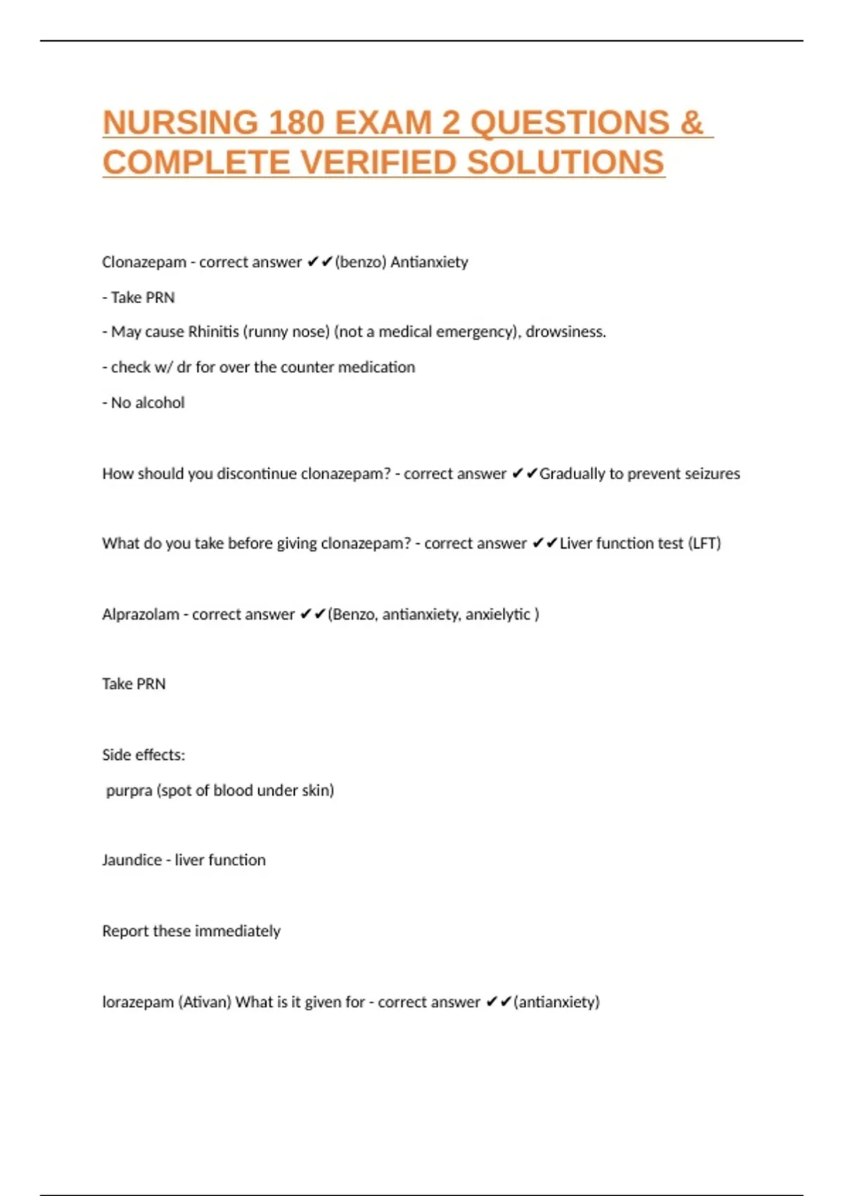 lorazepam (Ativan) What is it given for - correct answer ✔✔(antianxiety)