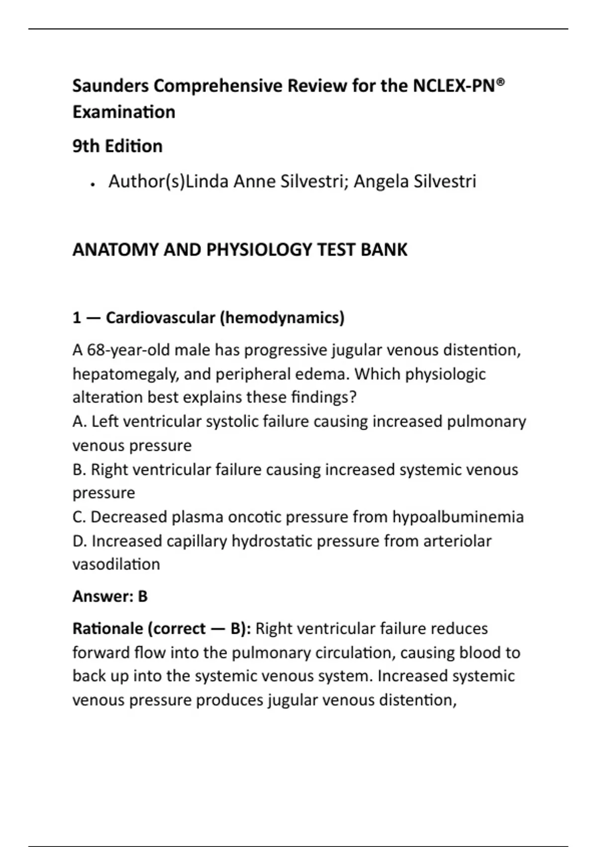 Rationale (correct — B): Right ventricular failure reduces