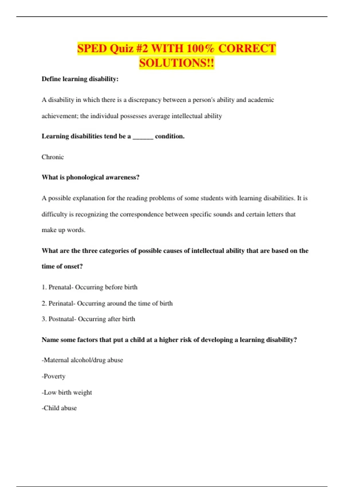 SPED Quiz #2 WITH 100% CORRECT SOLUTIONS!