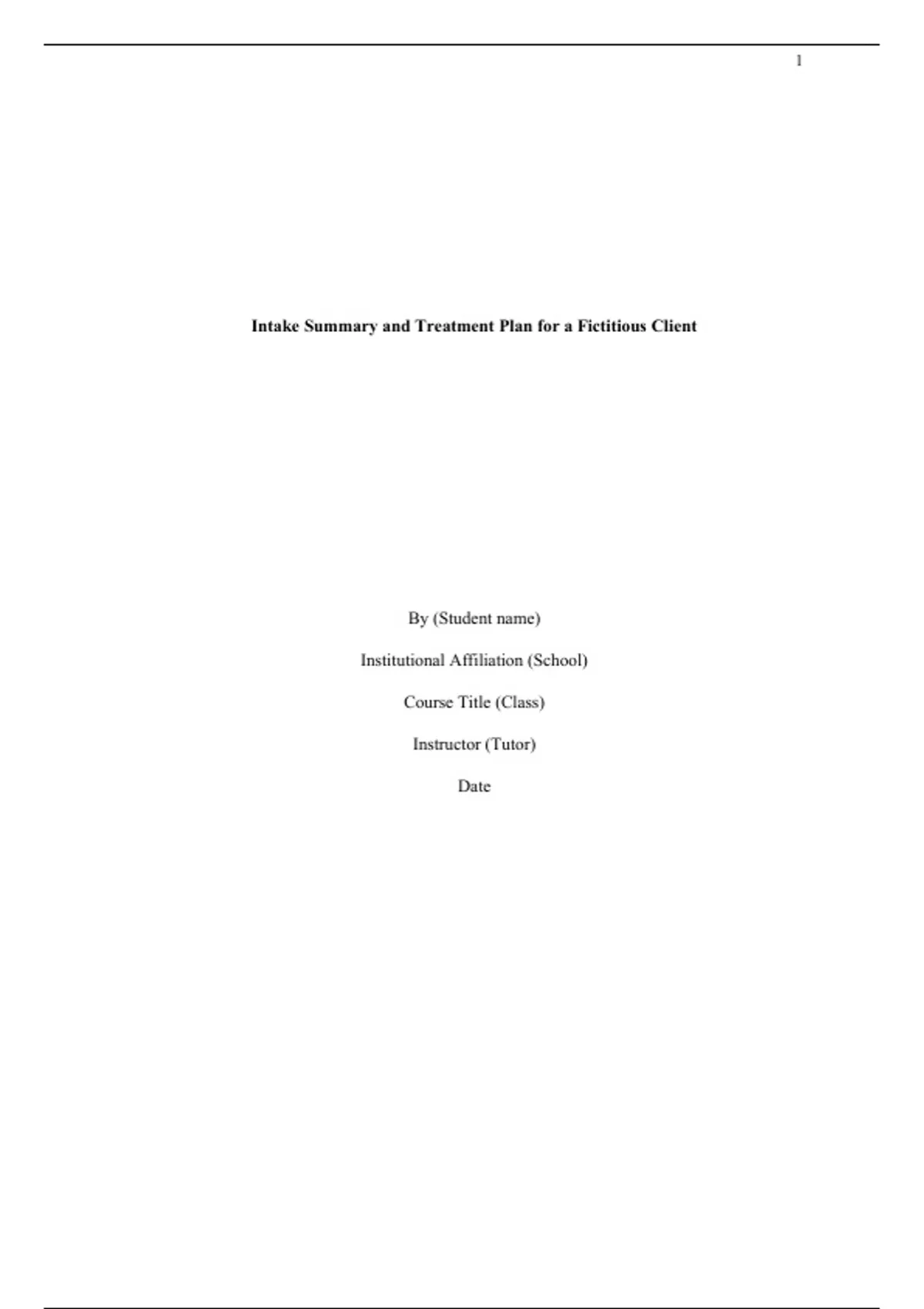 Intake Summary and Treatment Plan for a Fictitious Client