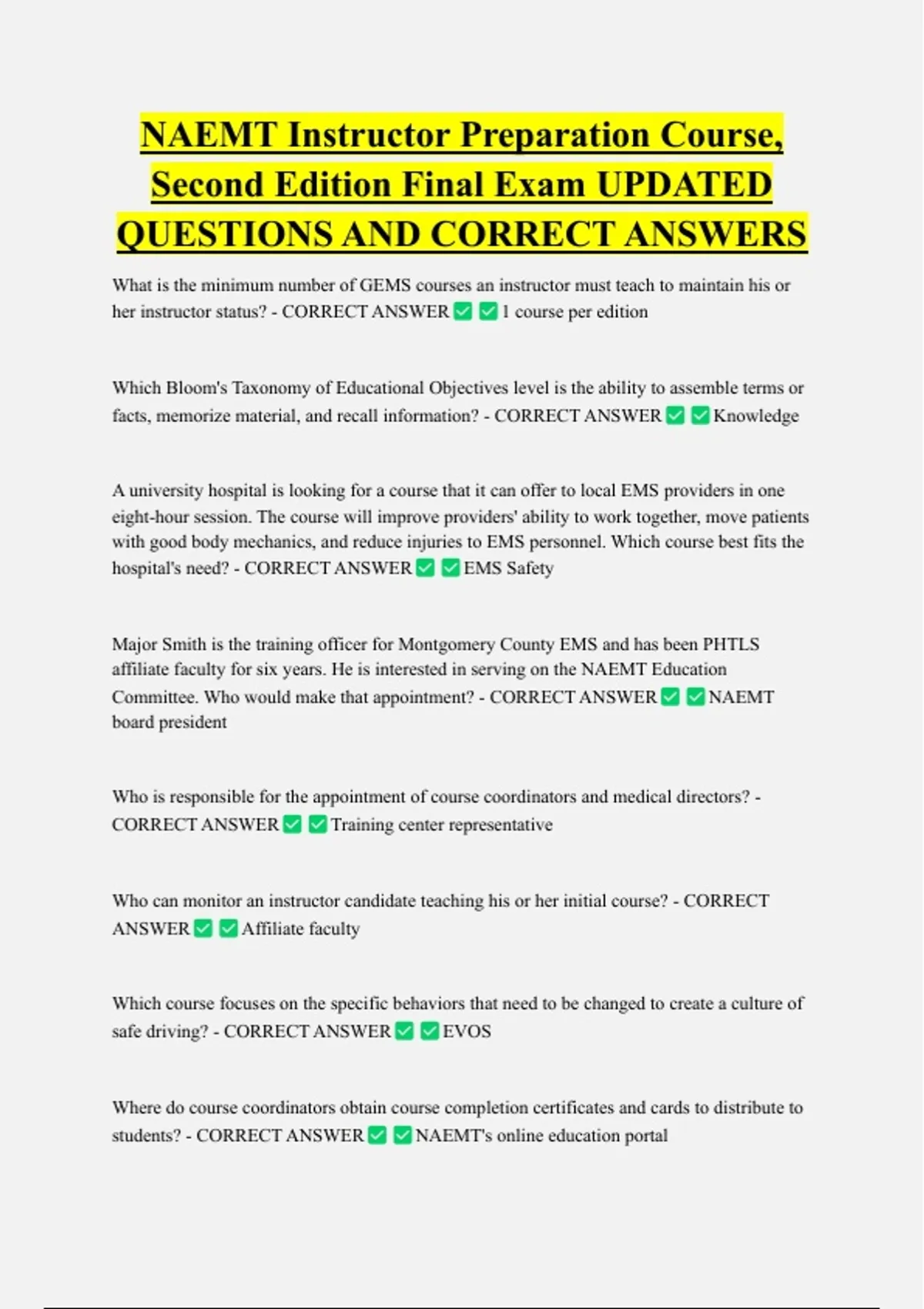 students? - CORRECT ANSWER NAEMT's online education portal