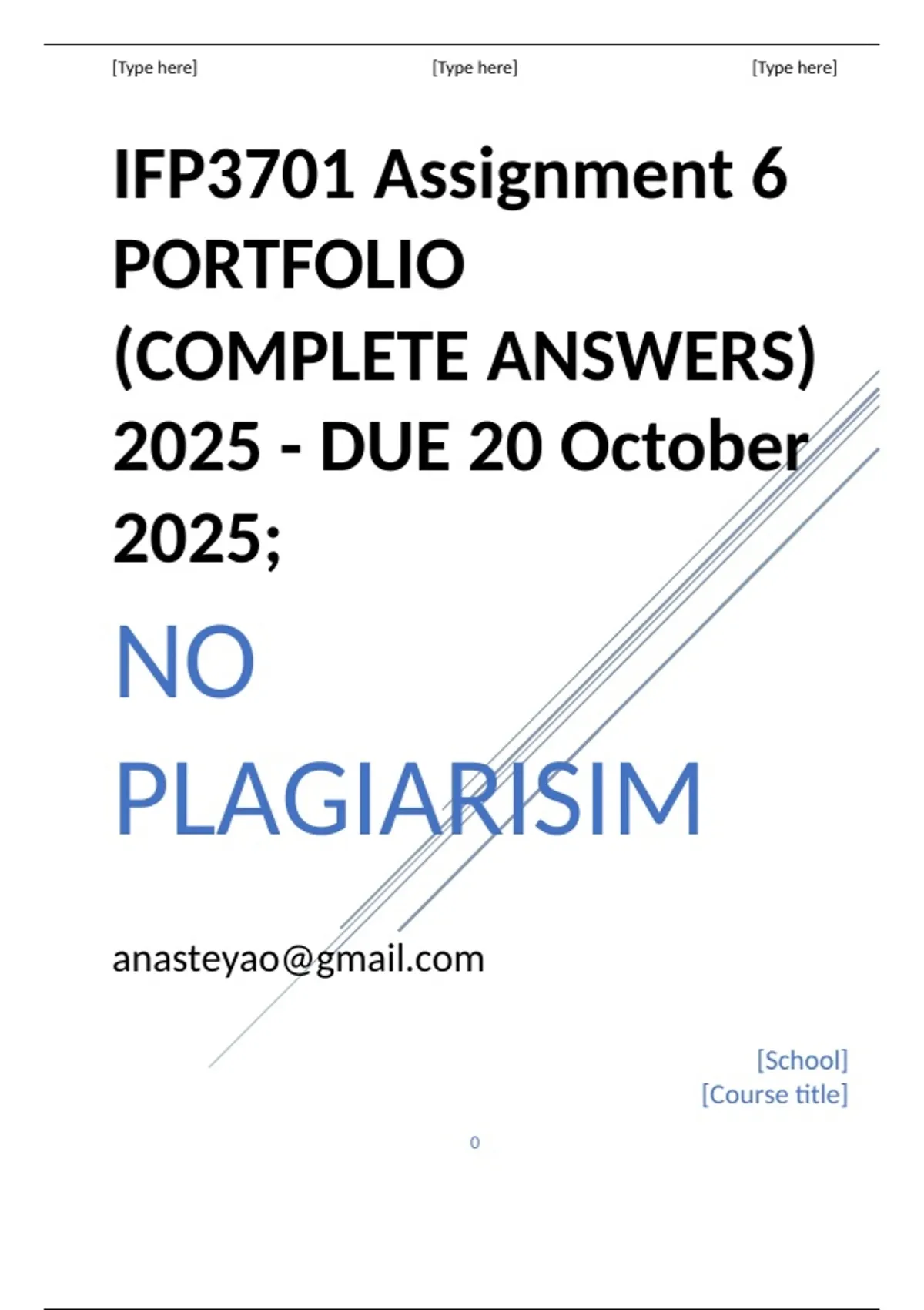 IFP3701 Assignment 6 PORTFOLIO (COMPLETE ANSWERS) 2025 - DUE 20 October