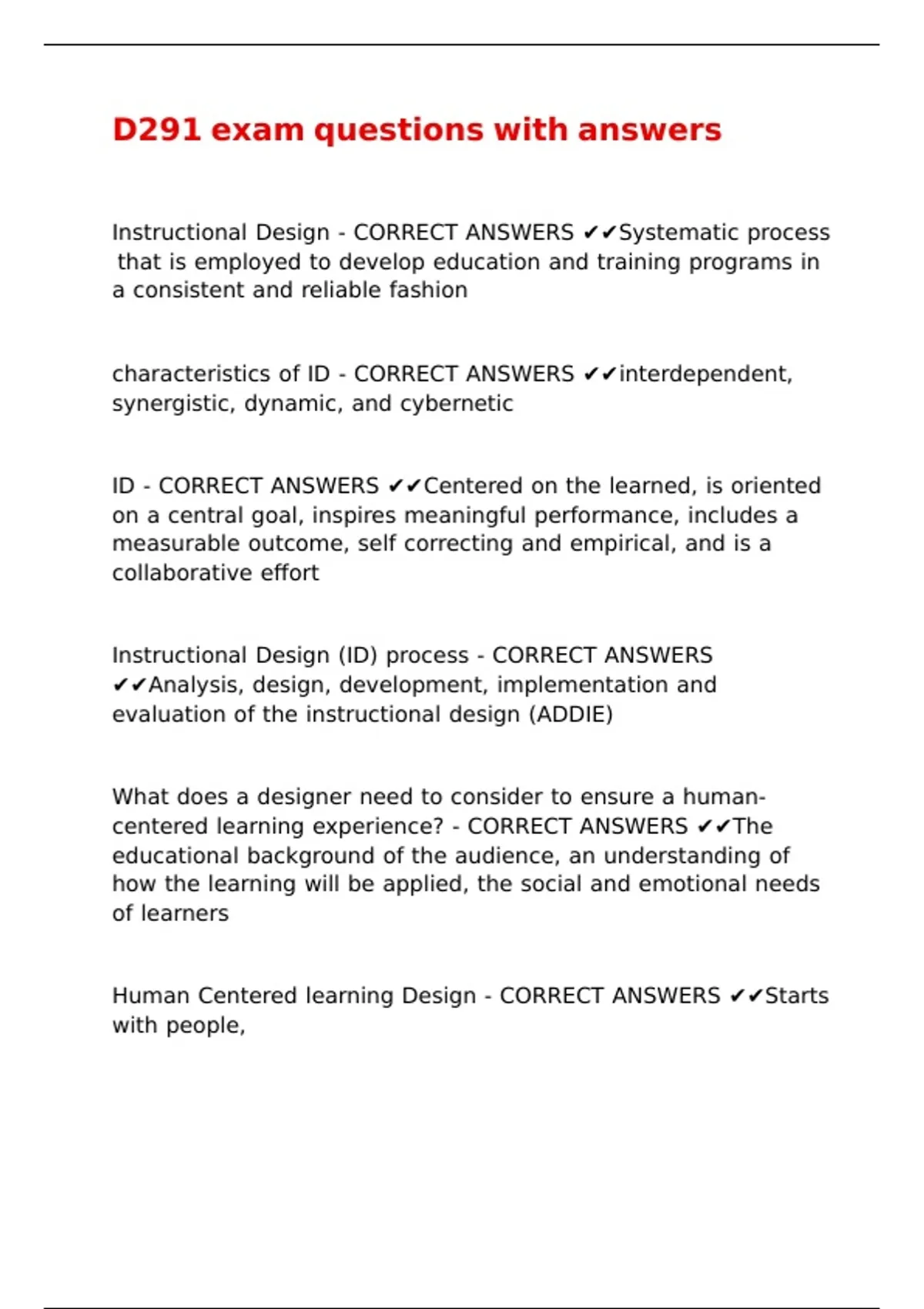 CORRECT ANSWERS ✔✔Instructional design |\ |\ |\