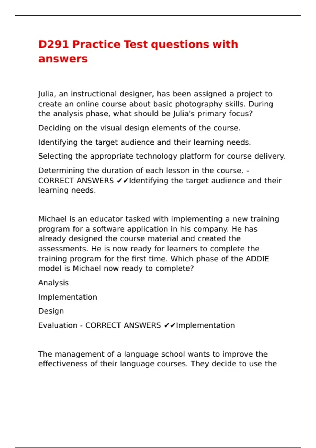ANSWERS ✔✔Seek feedback from learners and stakeholders.