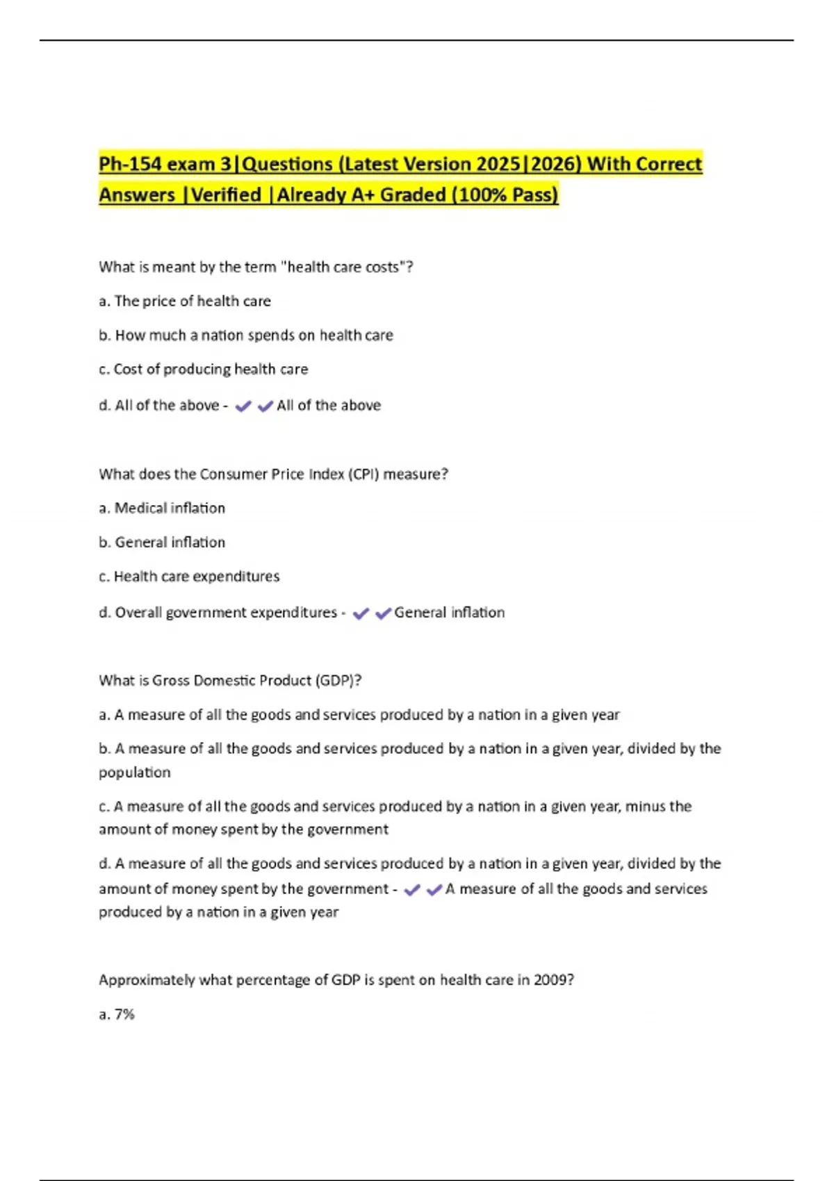 Ph-154 exam 3|Questions (Latest Version 2025|2026) With Correct Answers |Verified |Already A+ Graded (100% Pass)
