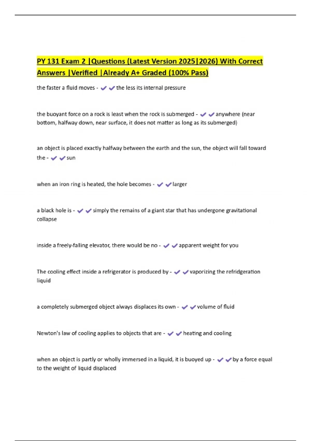 PY 131 Exam 2 |Questions (Latest Version 2025|2026) With Correct Answers |Verified |Already A+ Graded (100% Pass)