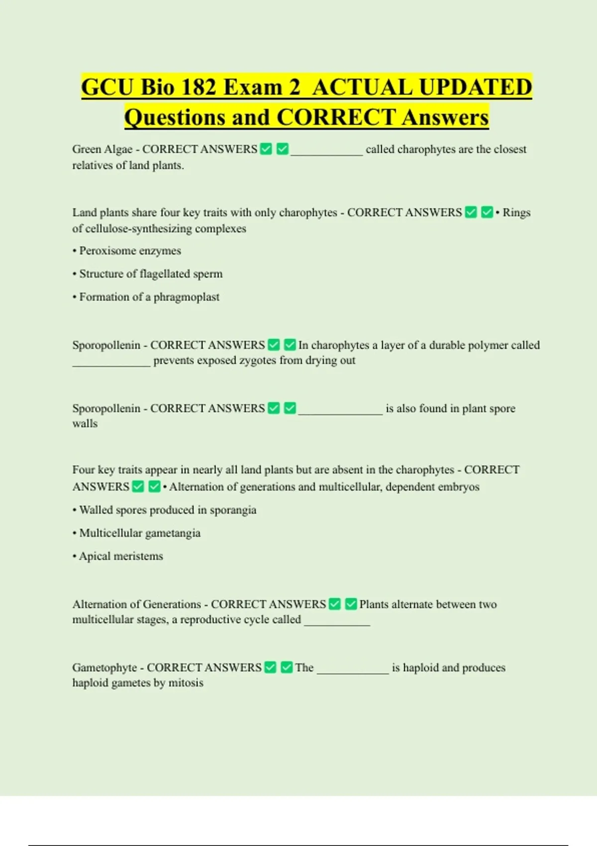 Green Algae - CORRECT ANSWERS ____________ called charophytes are the closest