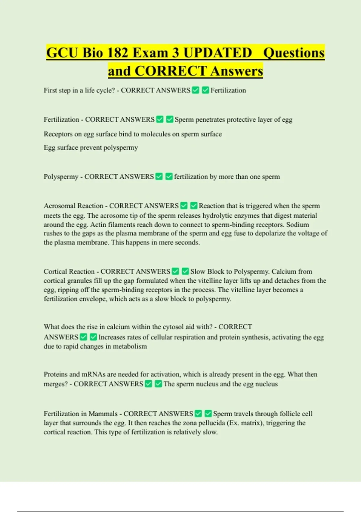 First step in a life cycle? - CORRECT ANSWERS Fertilization