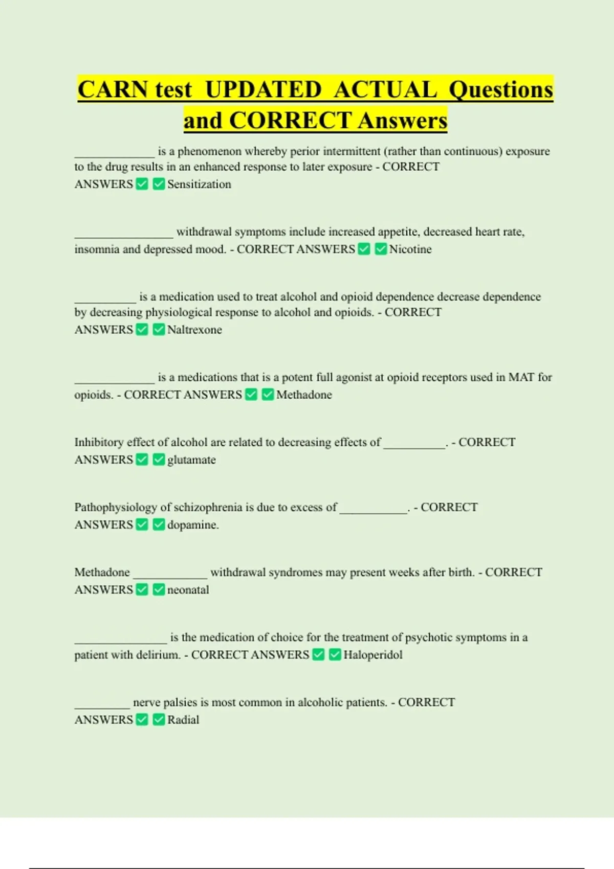 CARN test UPDATED ACTUAL Questions and CORRECT Answers