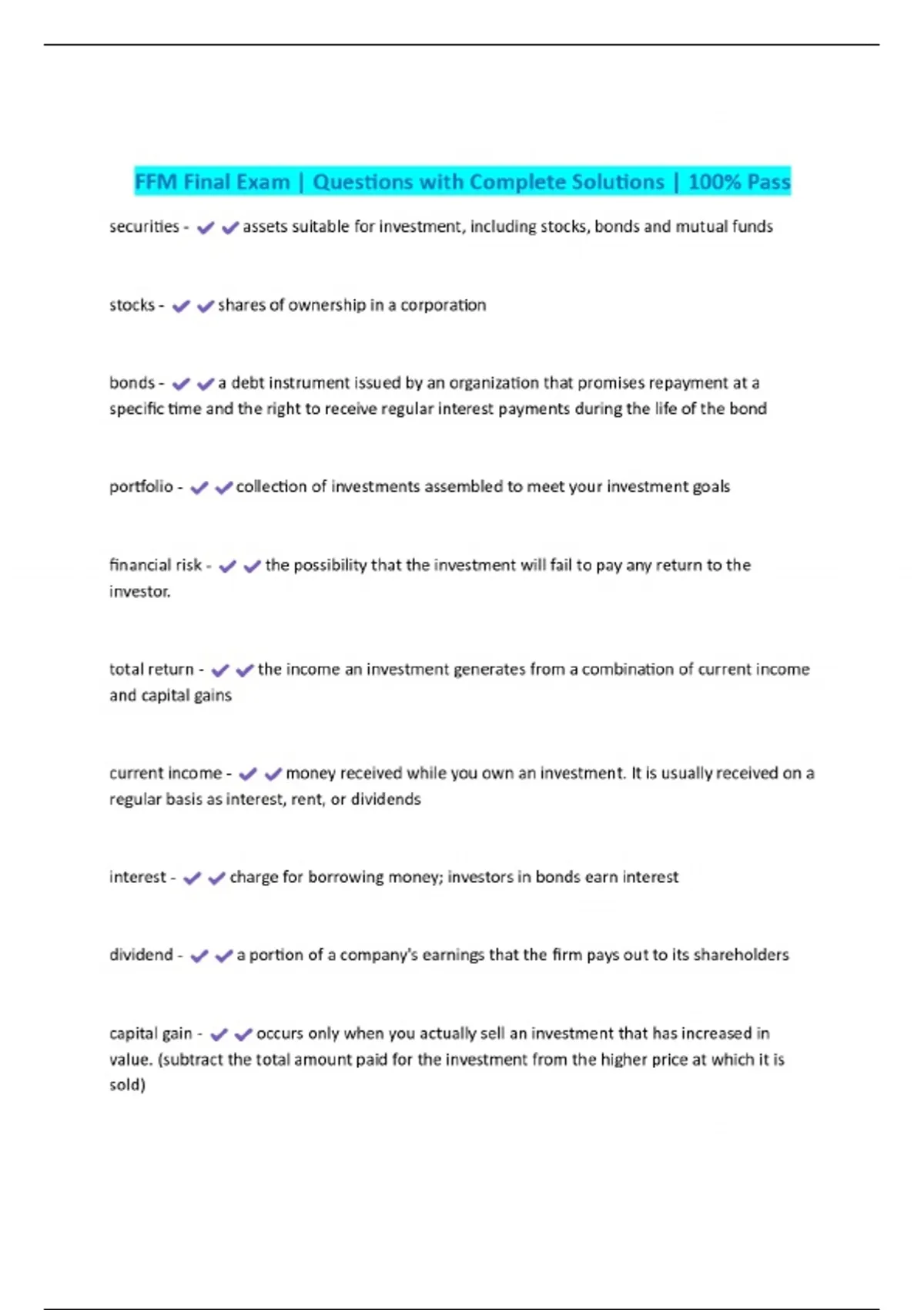 ffm final exam questions with complete solutions