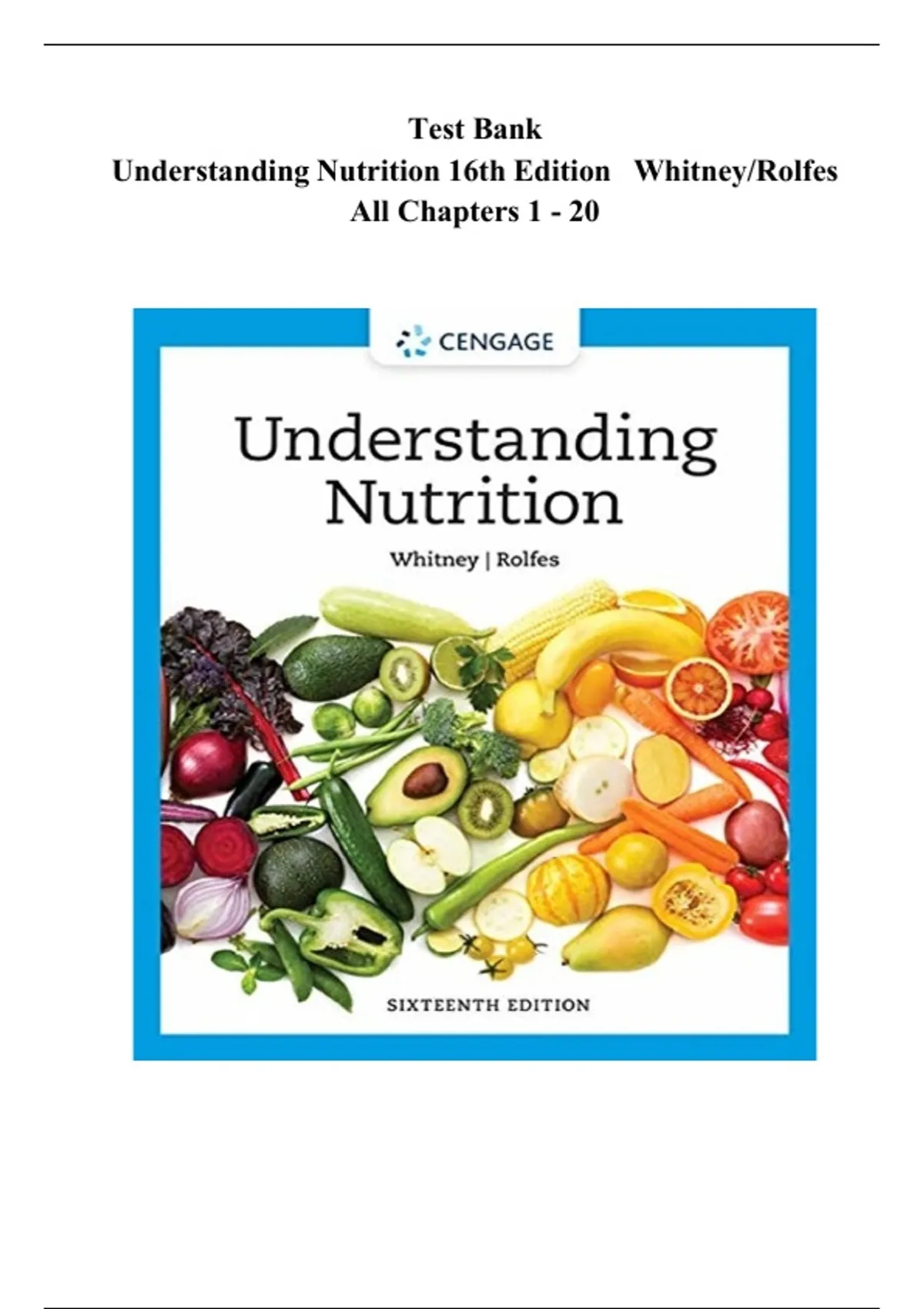 Test Bank Understanding Nutrition 16th Edition Whitney/Rolfes All Chapters 1 - 20