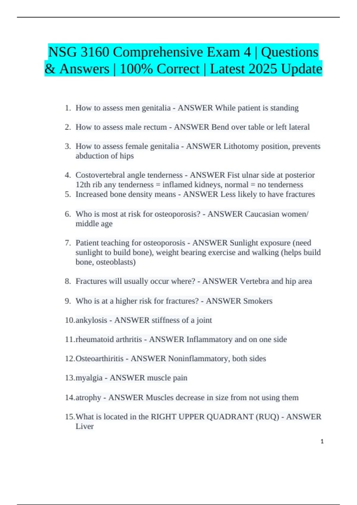 7. Patient teaching for osteoporosis - ANSWER Sunlight exposure (need