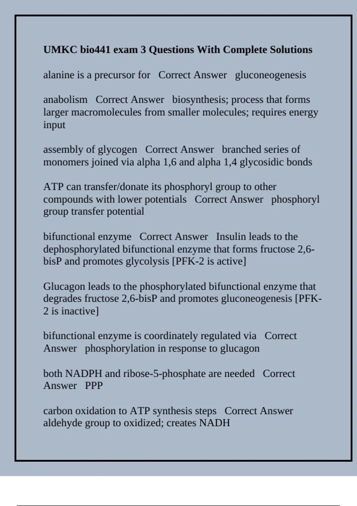 UMKC bio441 exam 3 Questions With Complete Solutions