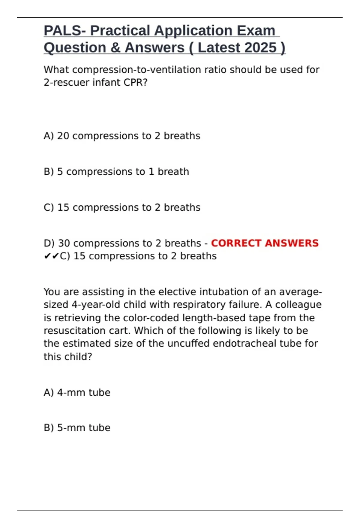 D) 30 compressions to 2 breaths - CORRECT ANSWERS