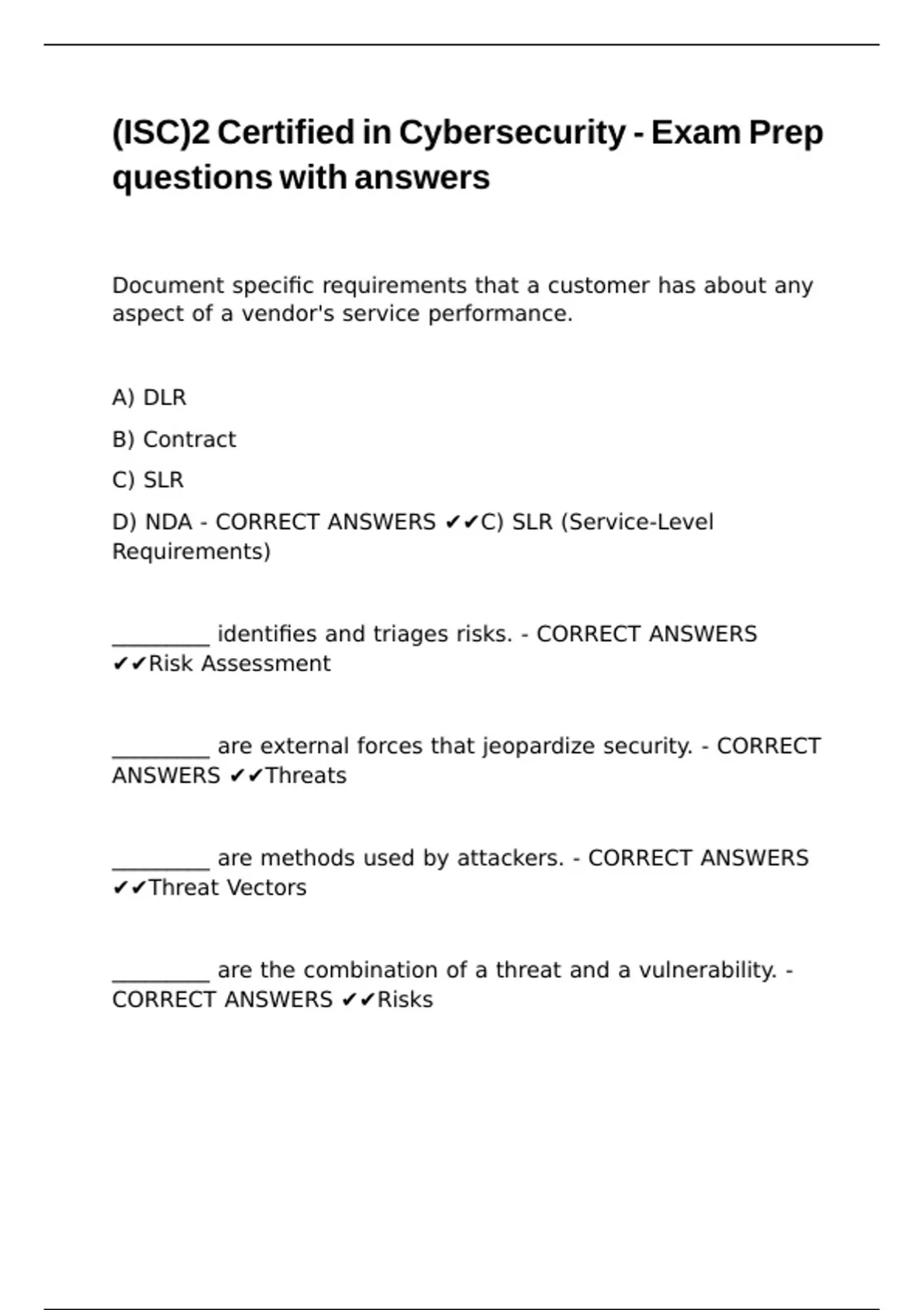 D) NDA - CORRECT ANSWERS ✔✔C) SLR (Service-Level