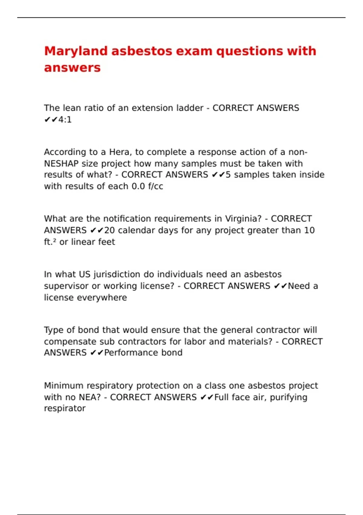 Maryland asbestos exam questions with answers