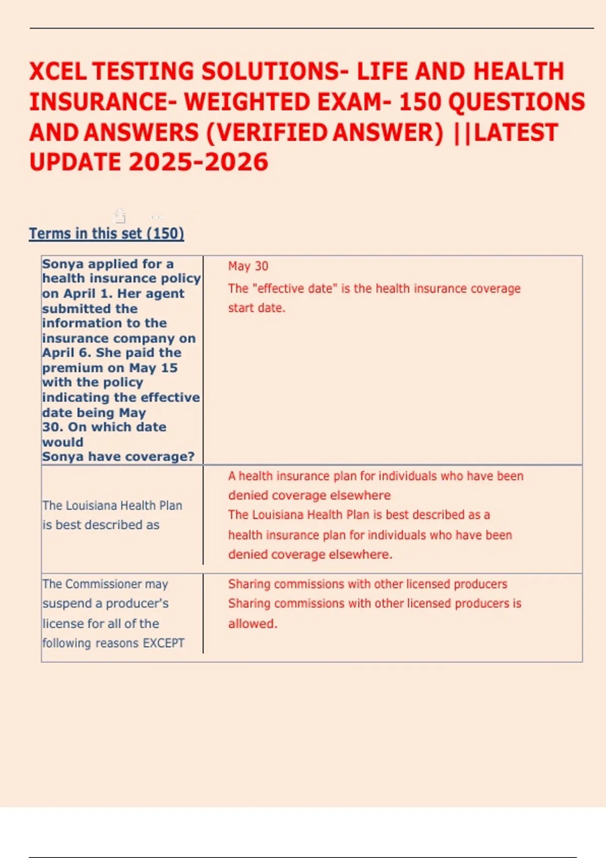 INSURANCE- WEIGHTED EXAM- 150 QUESTIONS
