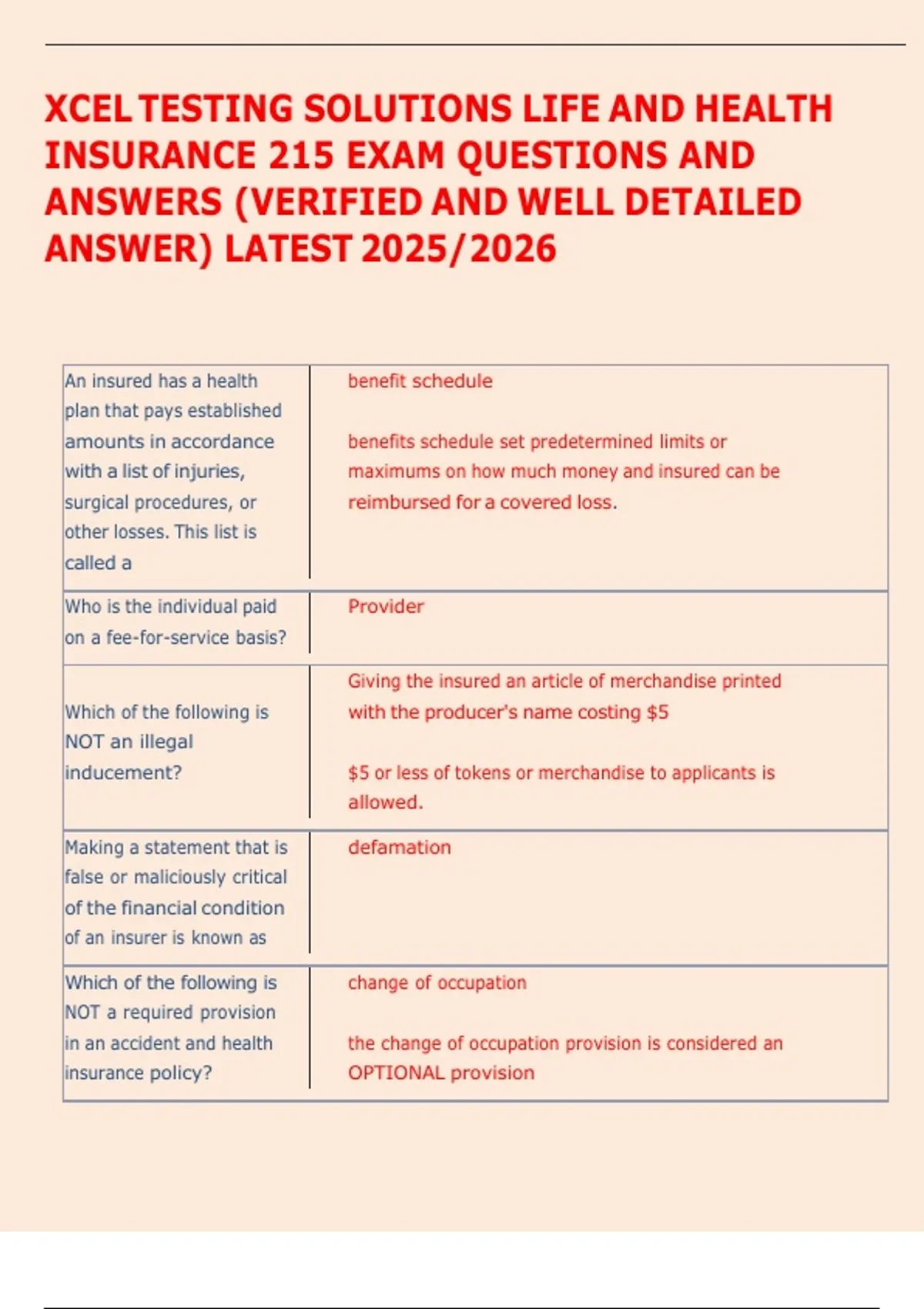 INSURANCE 215 EXAM QUESTIONS AND