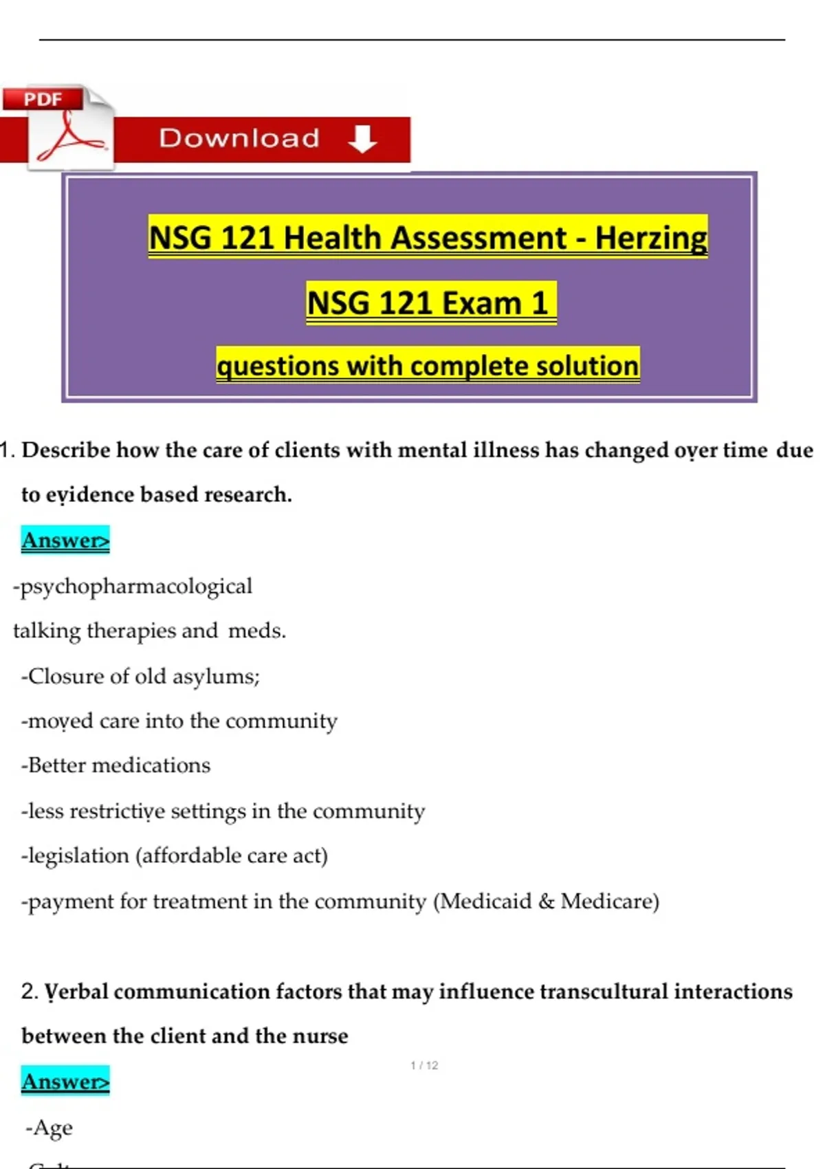 NSG 121 Health Assessment - Herzing