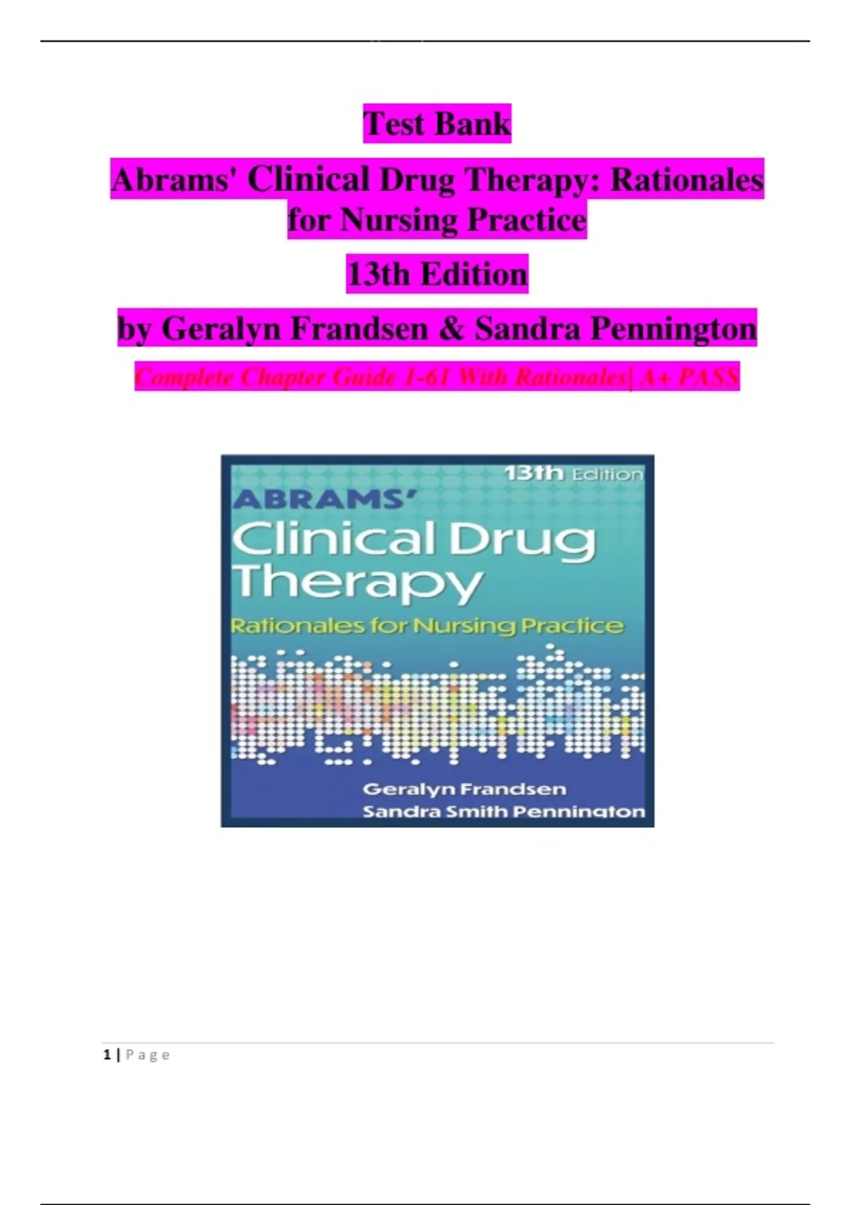 Test Bank - Abrams’ Clinical Drug Therapy: Rationales for Nursing Practice, 13th Edition (Frandsen, 2024)Newest Edition