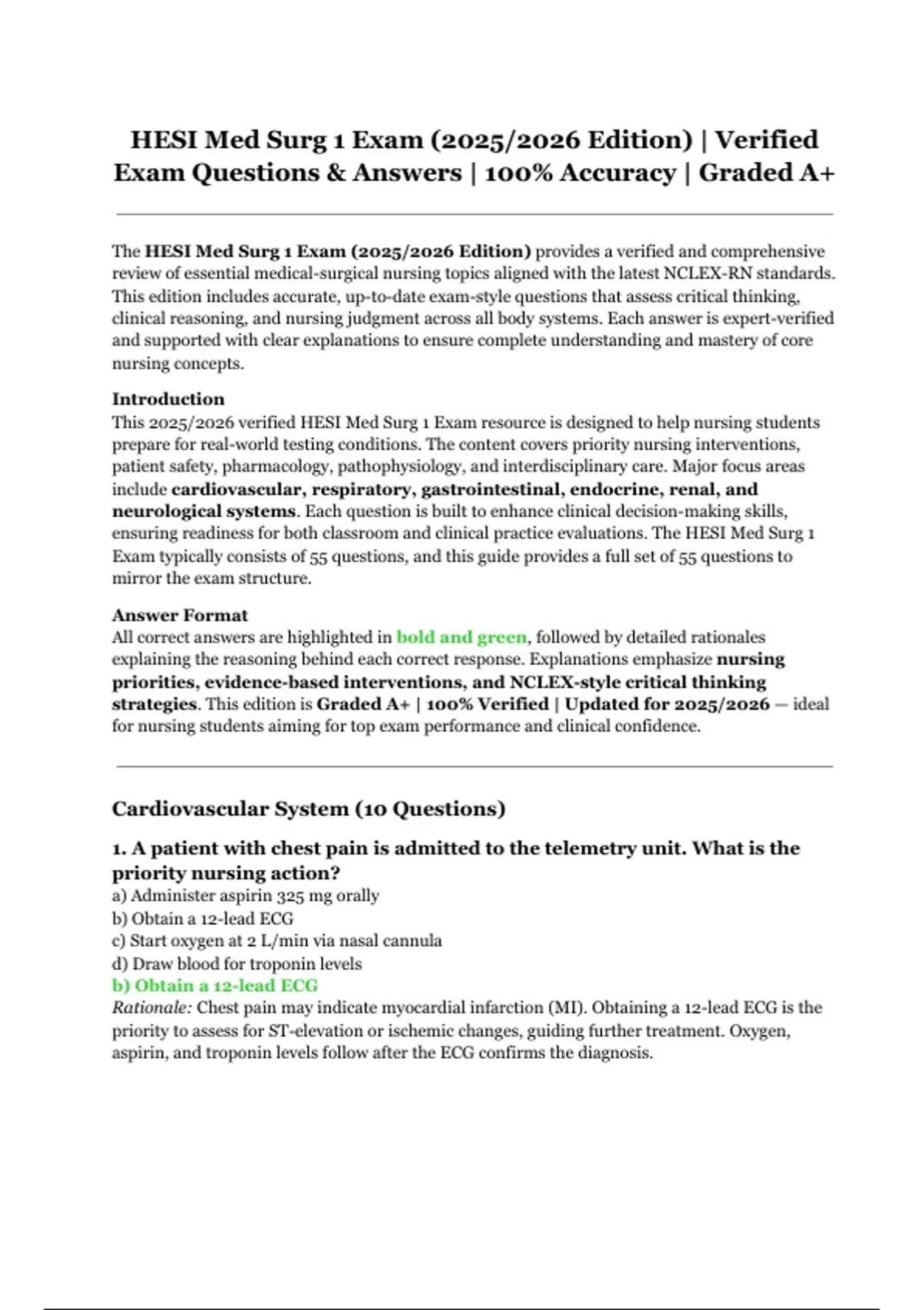 This 2025/2026 verified HESI Med Surg 1 Exam resource is designed to help nursing students