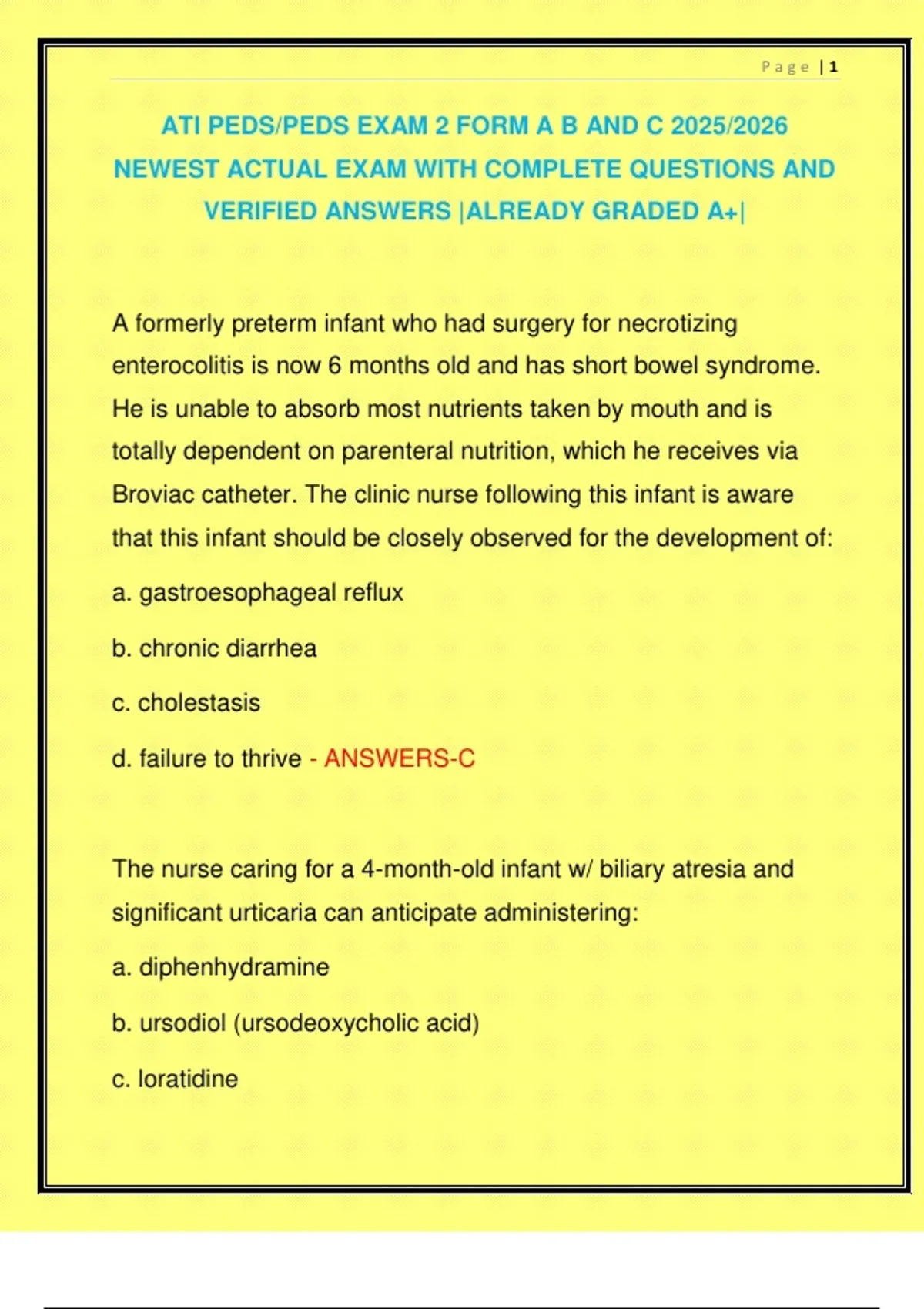 ATI PEDS/PEDS EXAM 2 FORM A B AND C 2025/2026