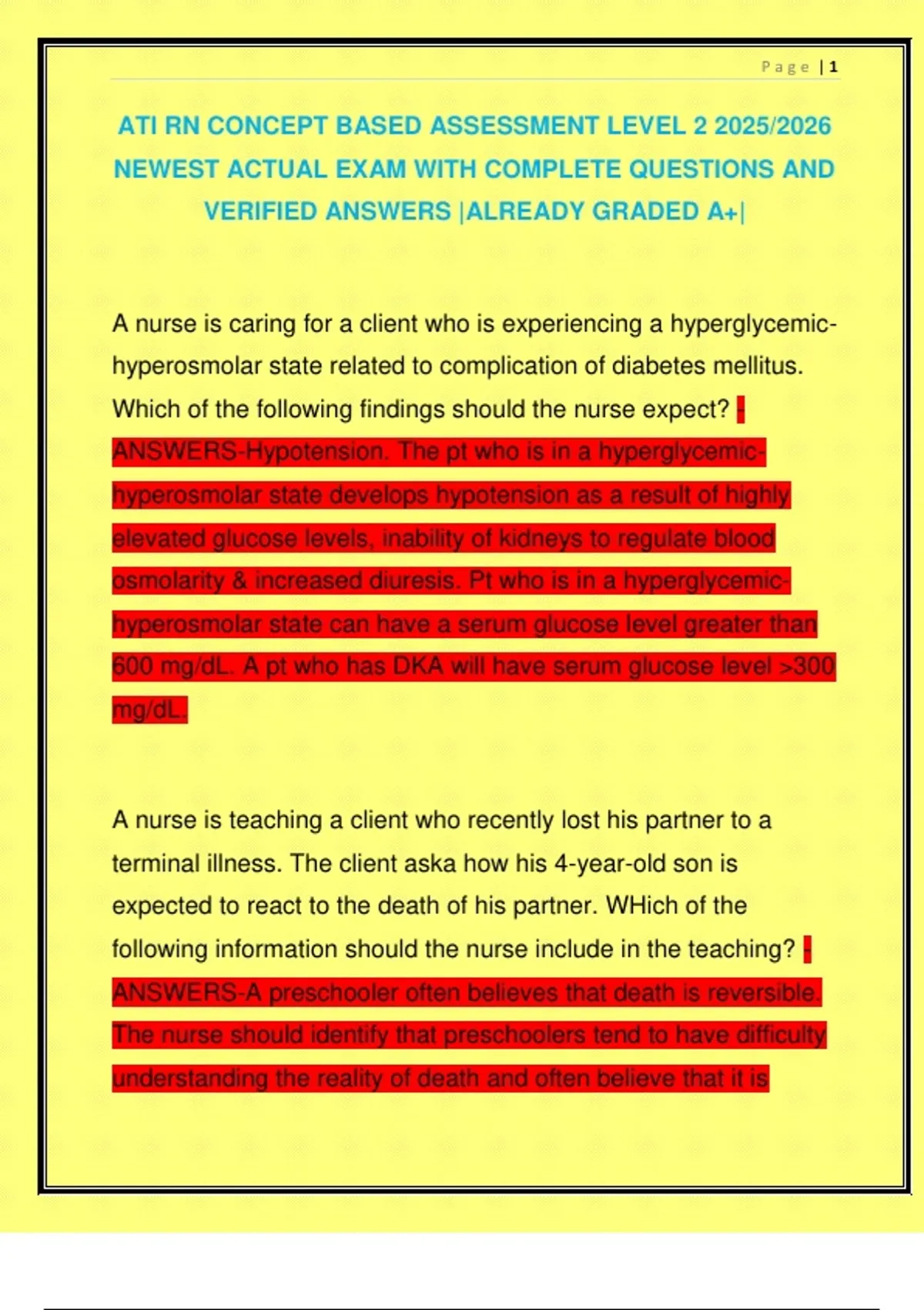 Looking for top-quality nursing exam resources? My comprehensive study materials on Stuvia are designed to help you succeed! With detailed explanations, practice questions, and expert insights, these exams are tailored to boost your understanding and performance. Invest in your future—purchase now and ace your nursing exams with confidence!