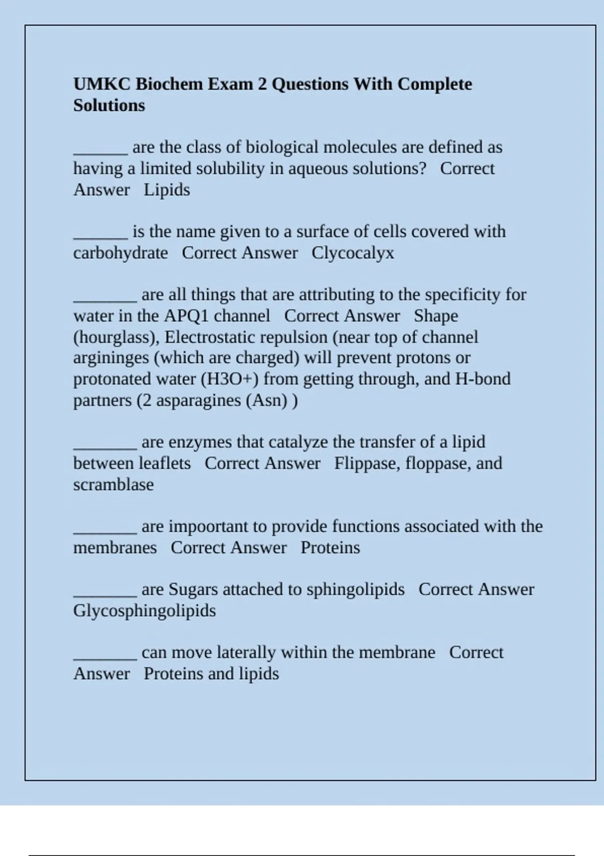UMKC Biochem Exam 2 Questions With Complete Solutions