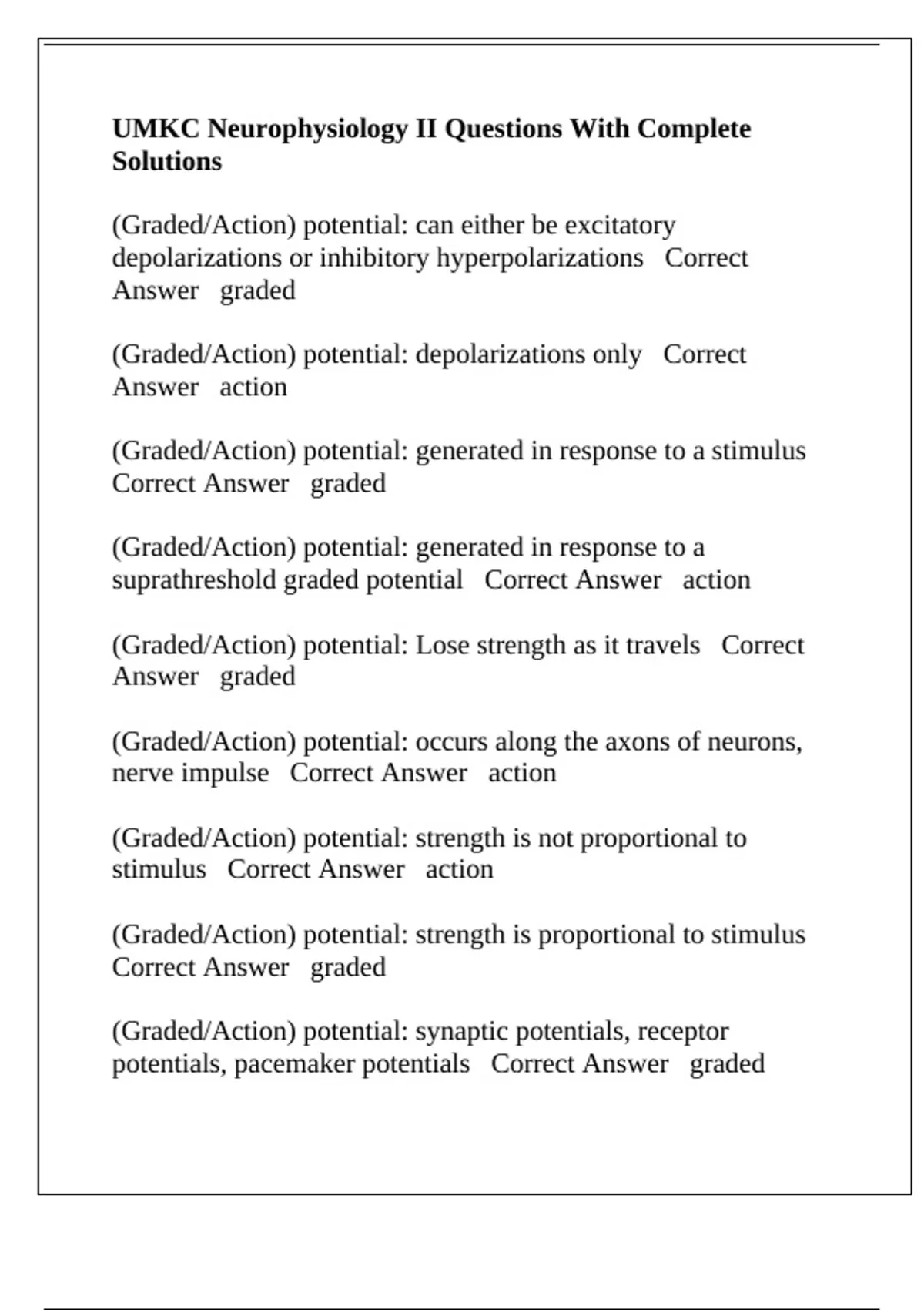 UMKC Neurophysiology II Questions With Complete
