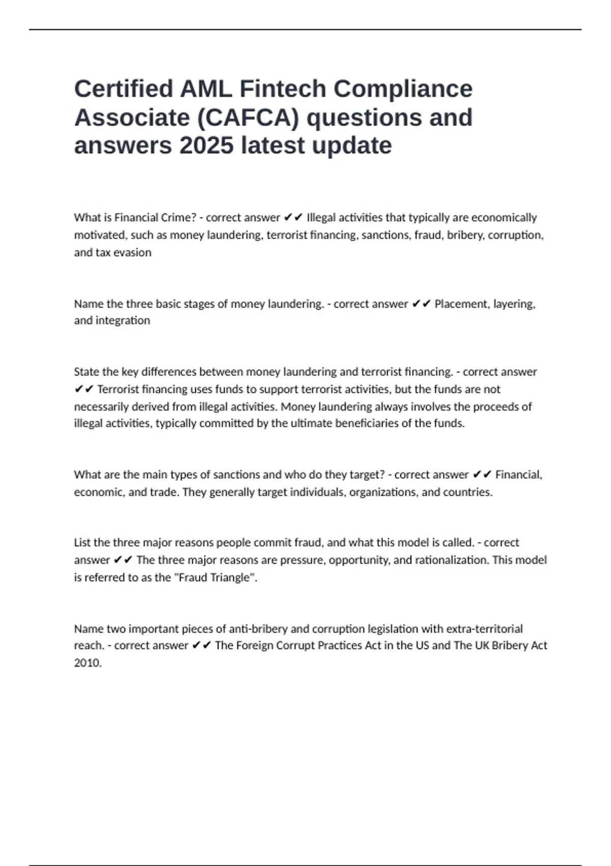 What is Financial Crime? - correct answer ✔✔ Illegal activities that typically are economically