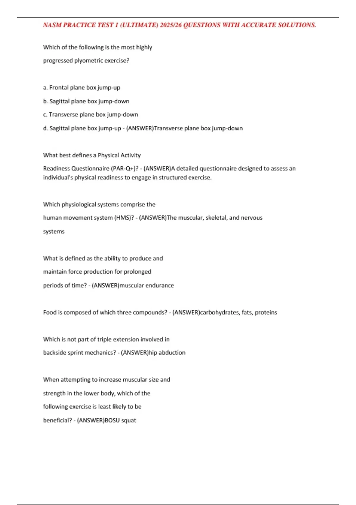 ,NASM PRACTICE TEST 1 (ULTIMATE) 2025/26 QUESTIONS WITH ACCURATE SOLUTIONS.