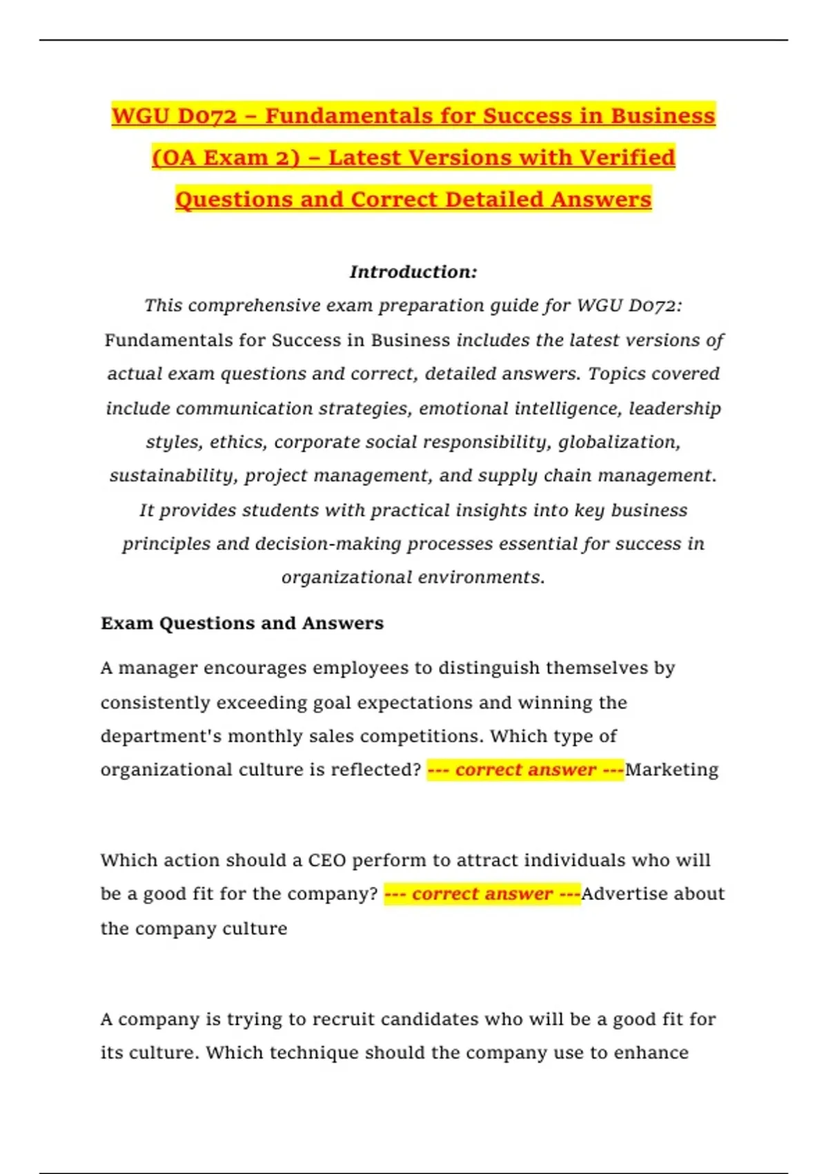 actual exam questions and correct, detailed answers. Topics covered