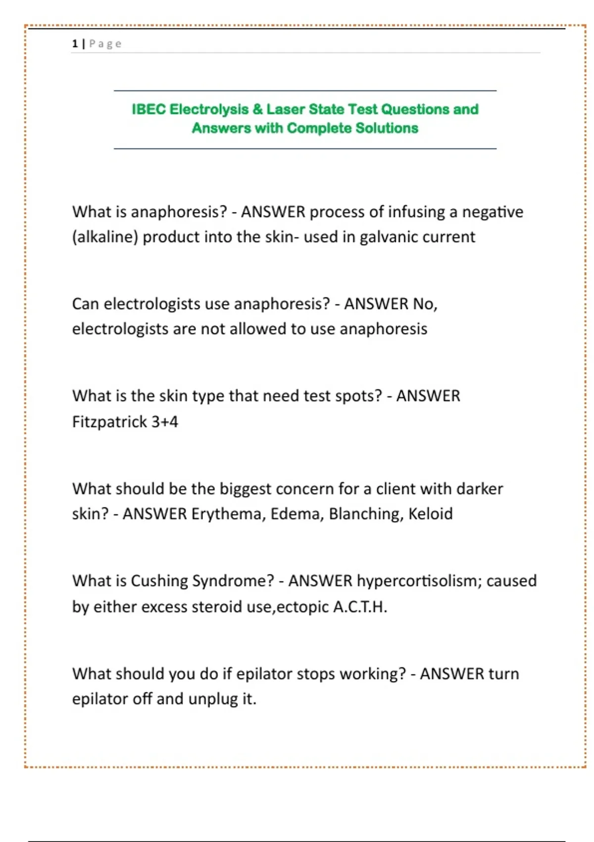 IBEC Electrolysis & Laser State Test Questions and Answers with Complete Solutions.