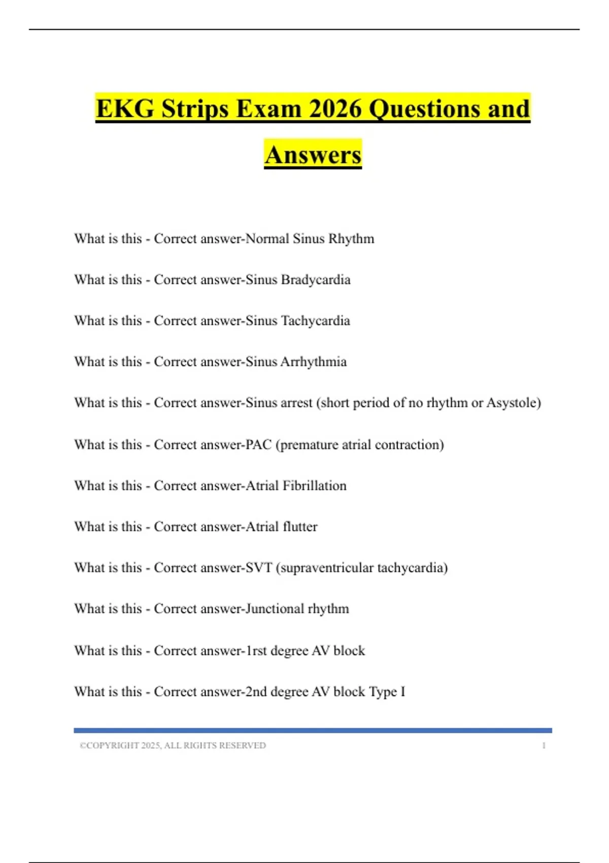 EKG Strips Exam 2026 Questions and