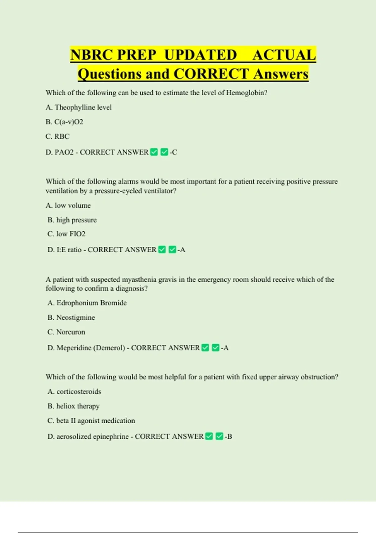 Questions and CORRECT Answers