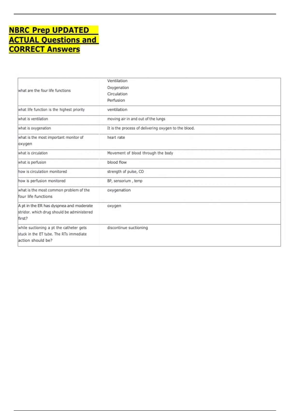 what life function is the highest priority ventilation