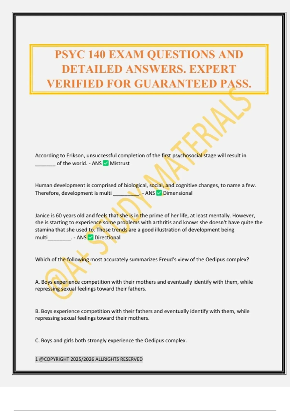 PSYC 140 EXAM QUESTIONS AND DETAILED ANSWERS. EXPERT VERIFIED FOR GUARANTEED PASS.