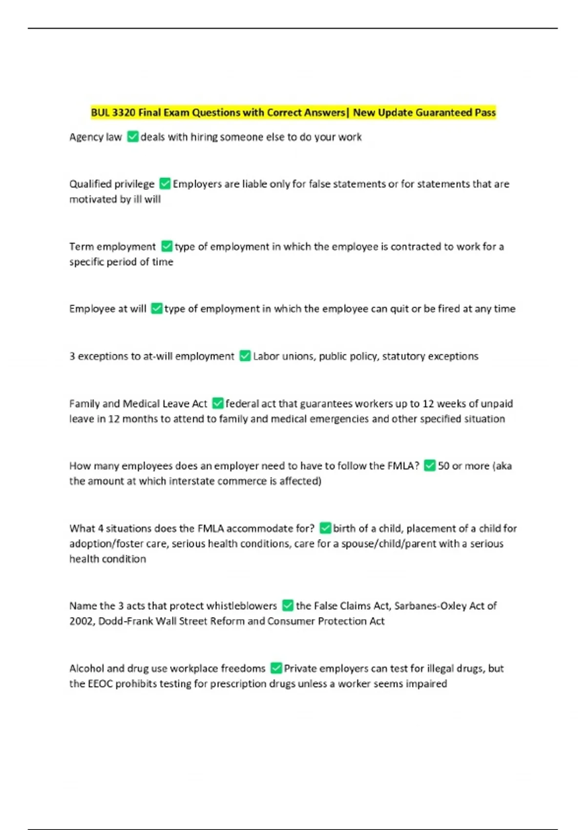 BUL 3320 Final Exam Questions with Correct Answers| New Update Guaranteed Pass