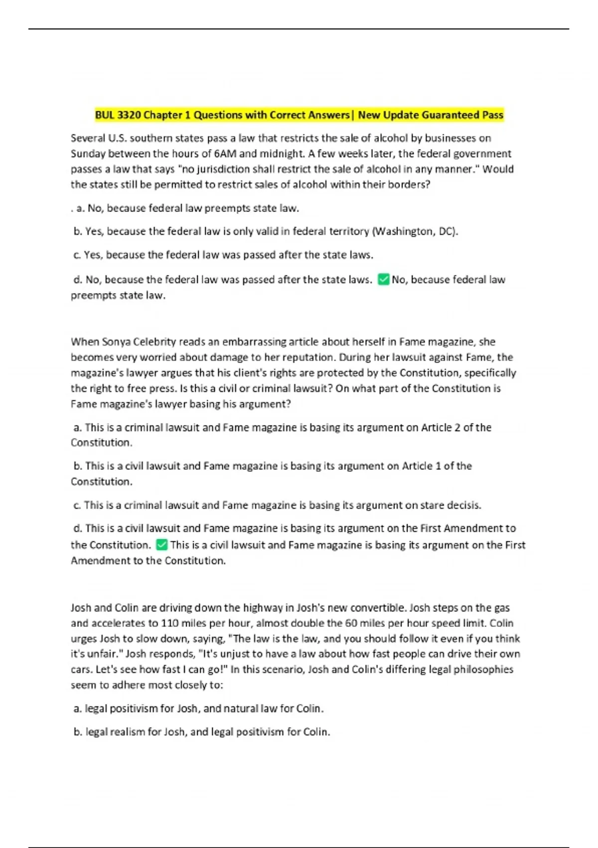 BUL 3320 Chapter 1 Questions with Correct Answers| New Update Guaranteed Pass