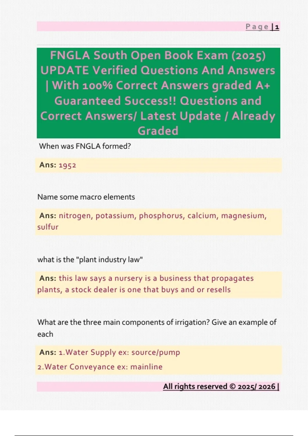 FNGLA South Open Book Exam (2025)