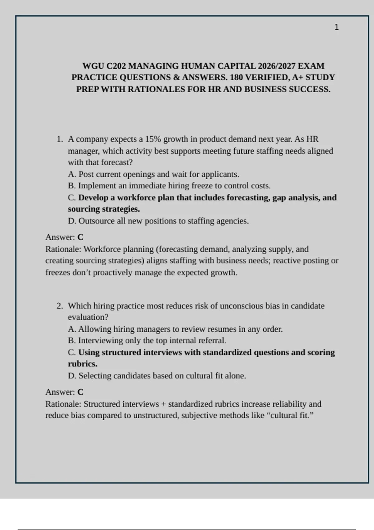WGU C202 MANAGING HUMAN CAPITAL 2026/2027 EXAM