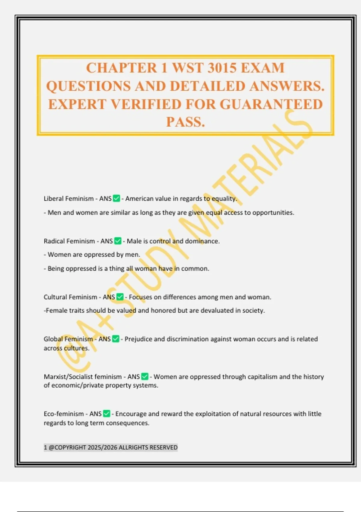 Global Feminism - ANS - Prejudice and discrimination against woman occurs and is related