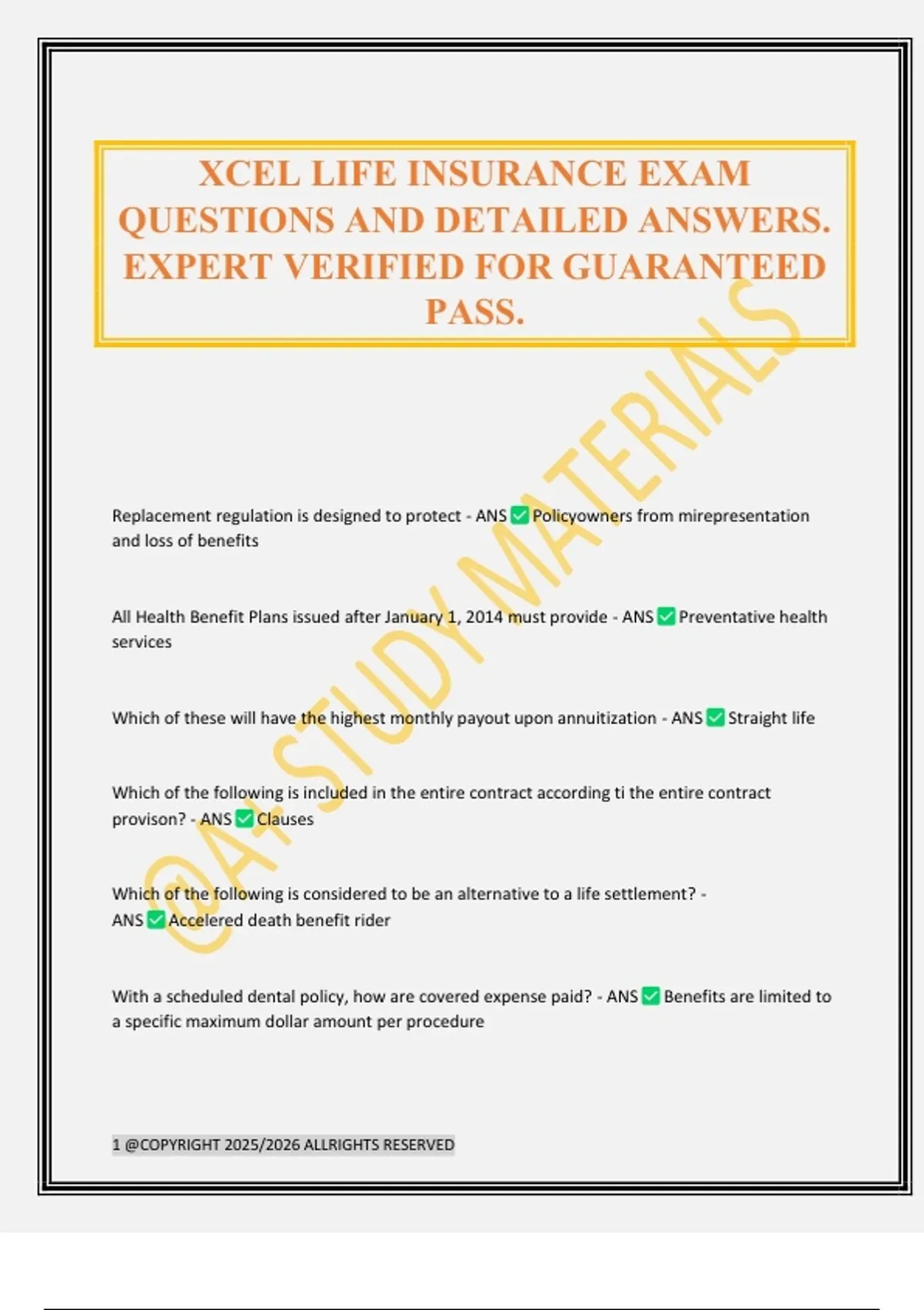 XCEL LIFE INSURANCE EXAM