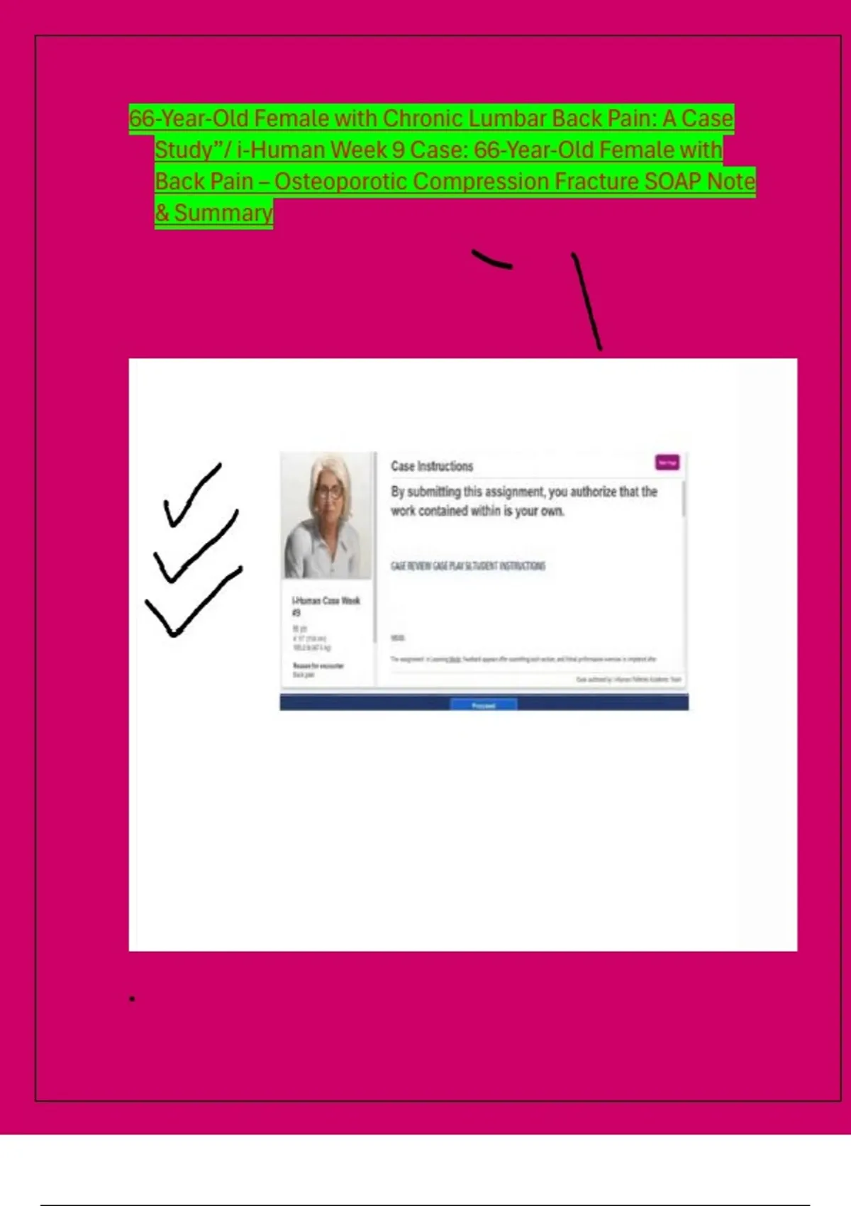 i-Human Week 9 Case: 66-Year-Old Female with Back Pain – Osteoporotic Compression Fracture SOAP Note & Summary