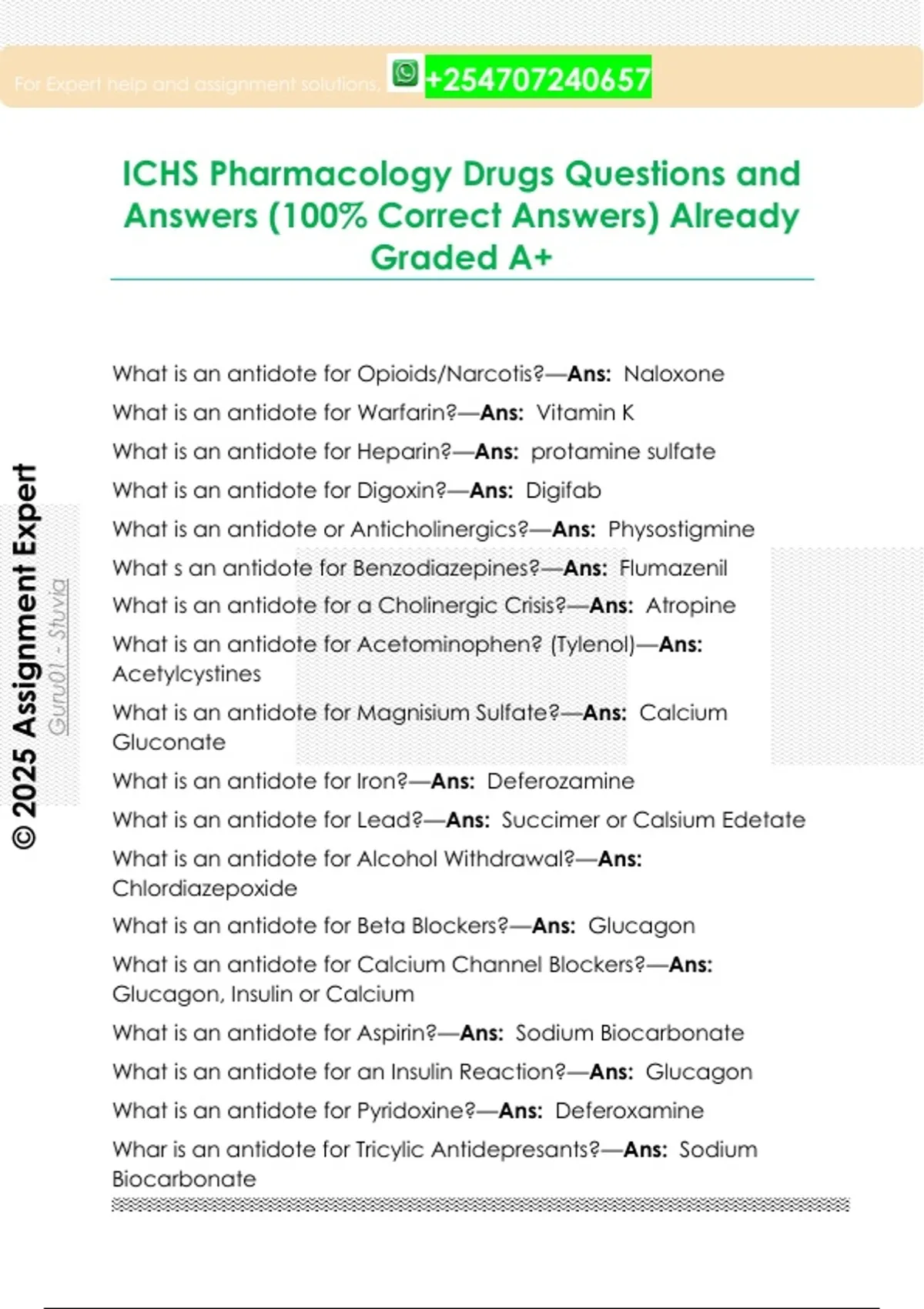 ICHS Pharmacology Drugs Questions and
