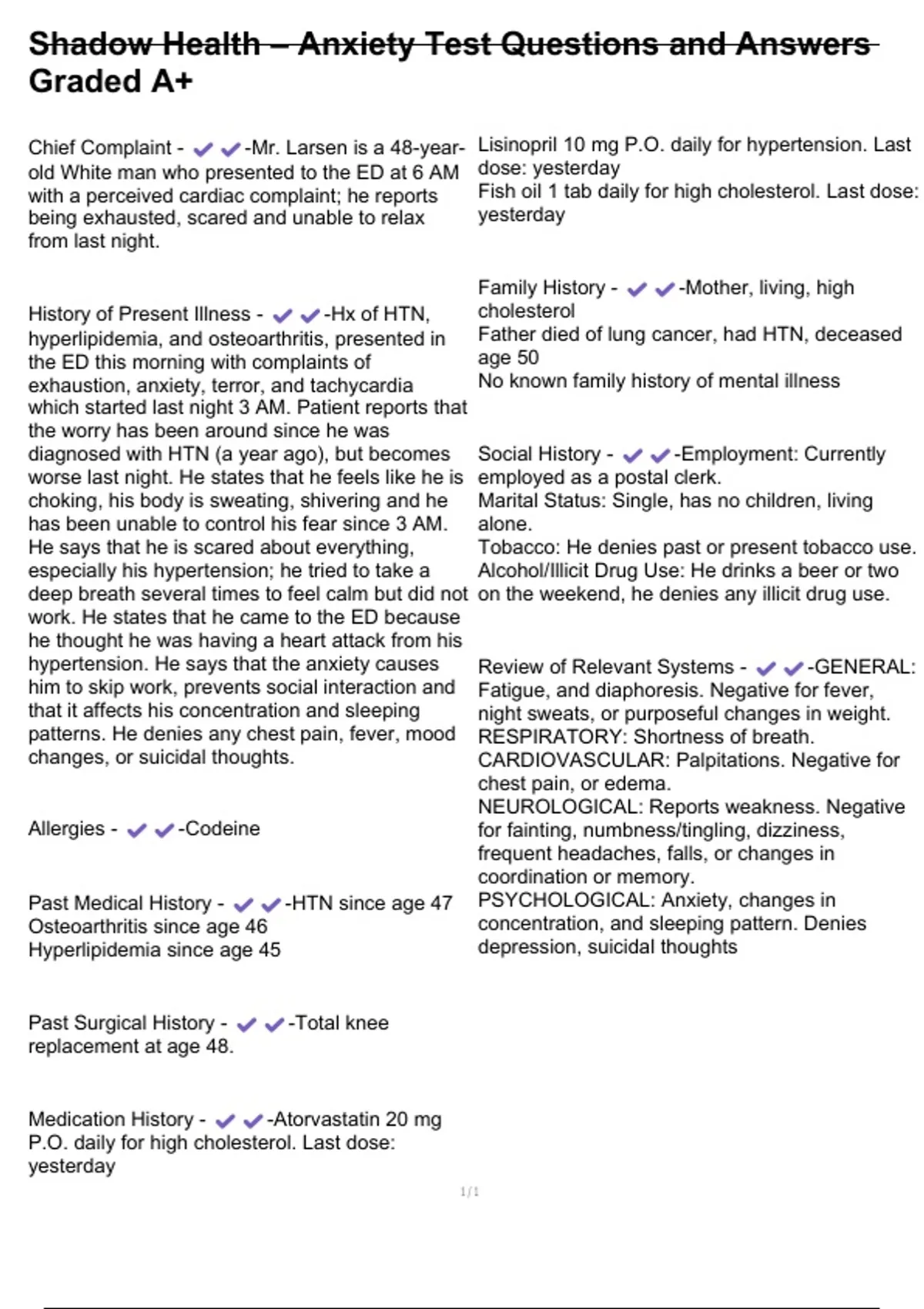 Shadow Health – Anxiety Test Questions and Answers