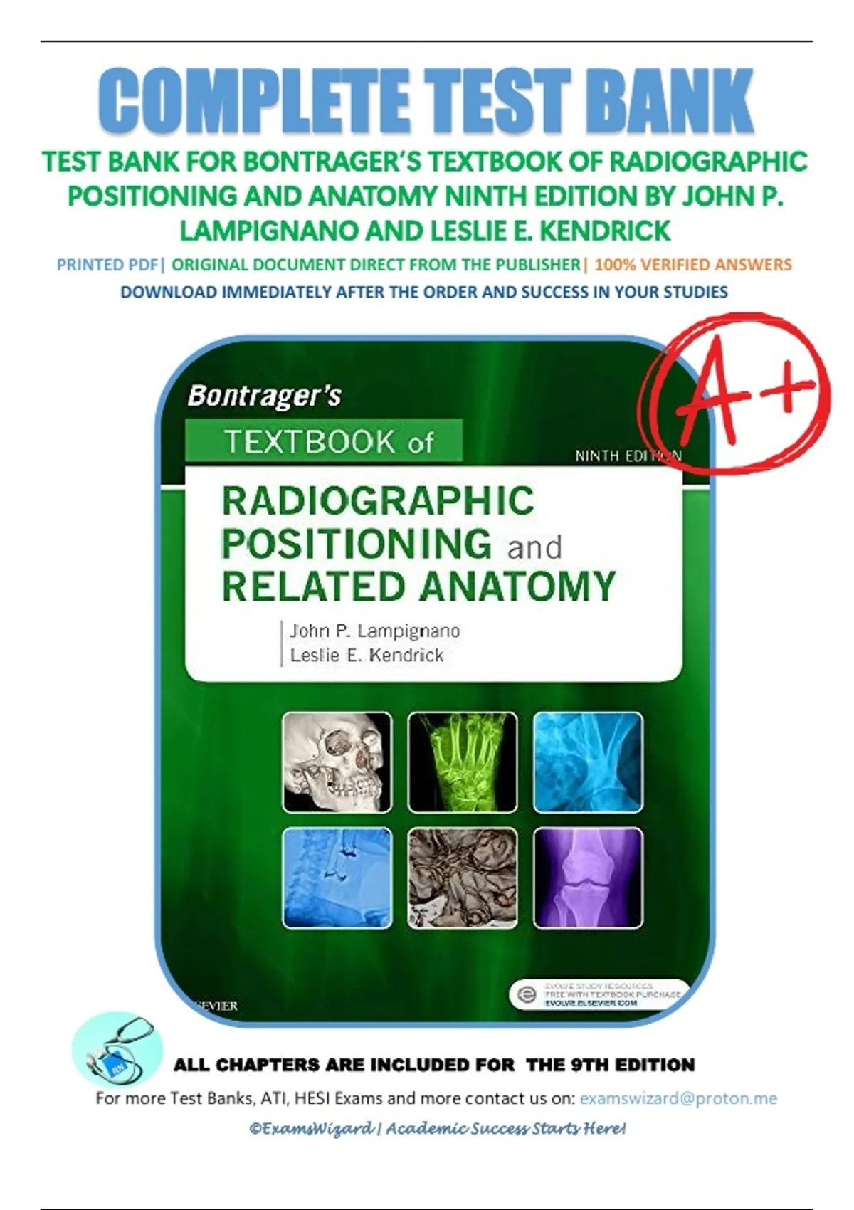 ,Bontrager's Textbook of Radiographic Positioning and Related Anatomy 9th Edition Lampignano Test Bank