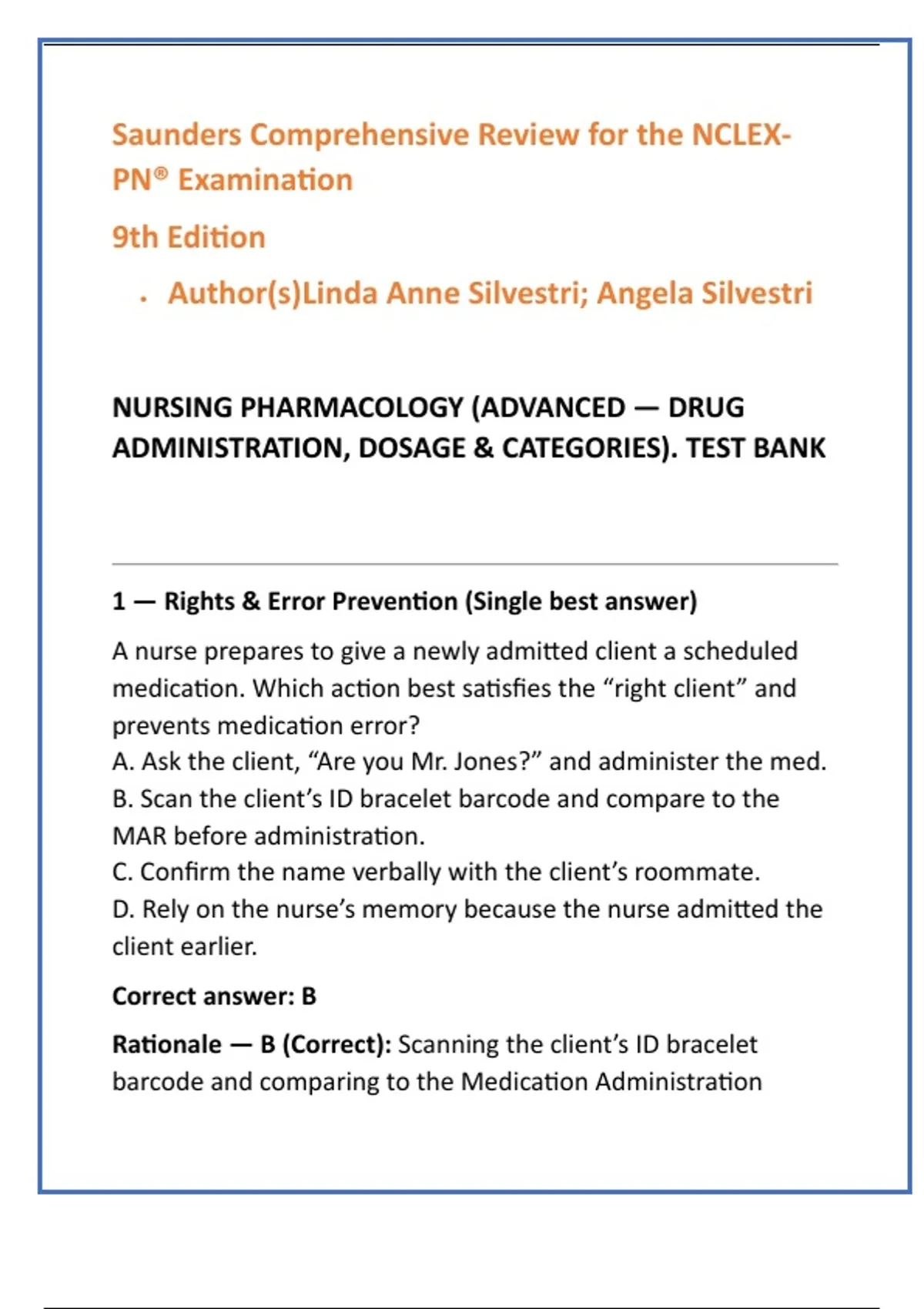 Saunders-Aligned NCLEX Pharmacology Test Bank — 25+ Advanced Drug Administration & Dosage Calculation Qs with Rationales | 2025 NCLEX-RN Prep